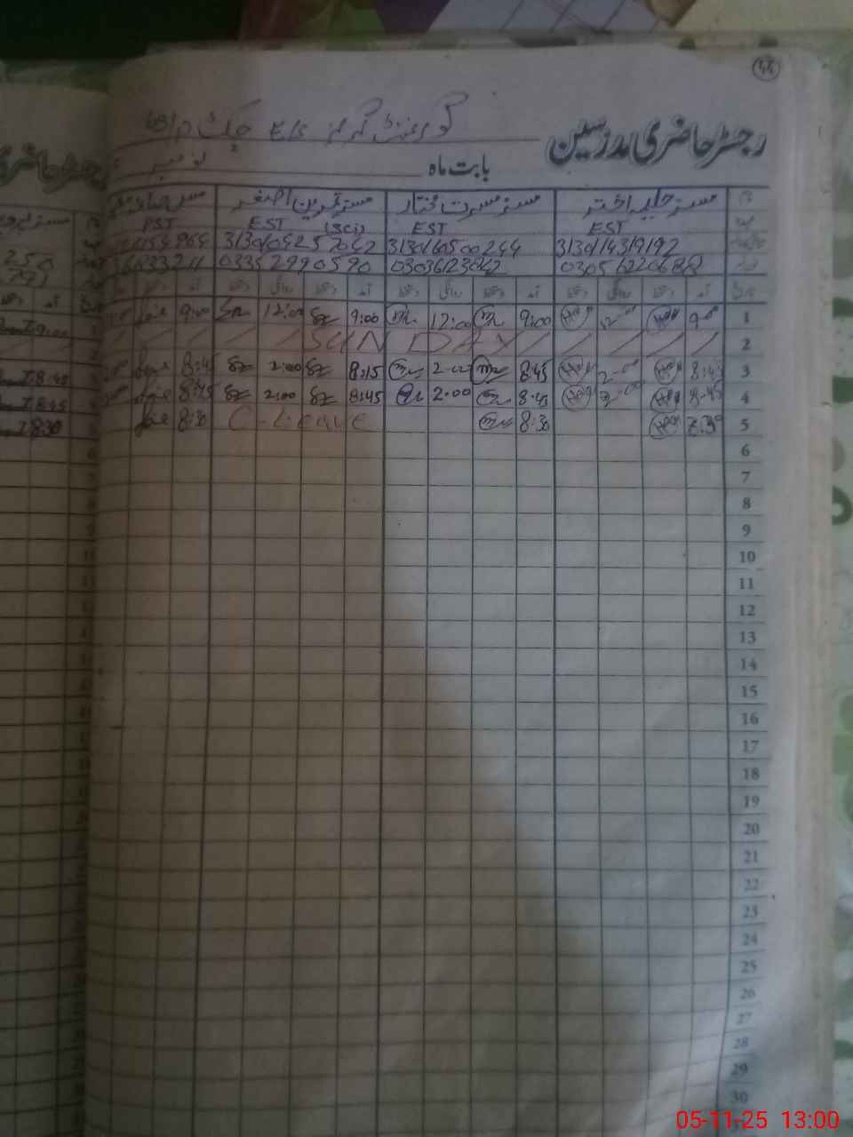 | 00**** | Ma**** | N QASID | 0 | 0 | 31 | 0 | 0 | 0 | 0 | 0 | 0 | Absent (Un-Authorized) | |