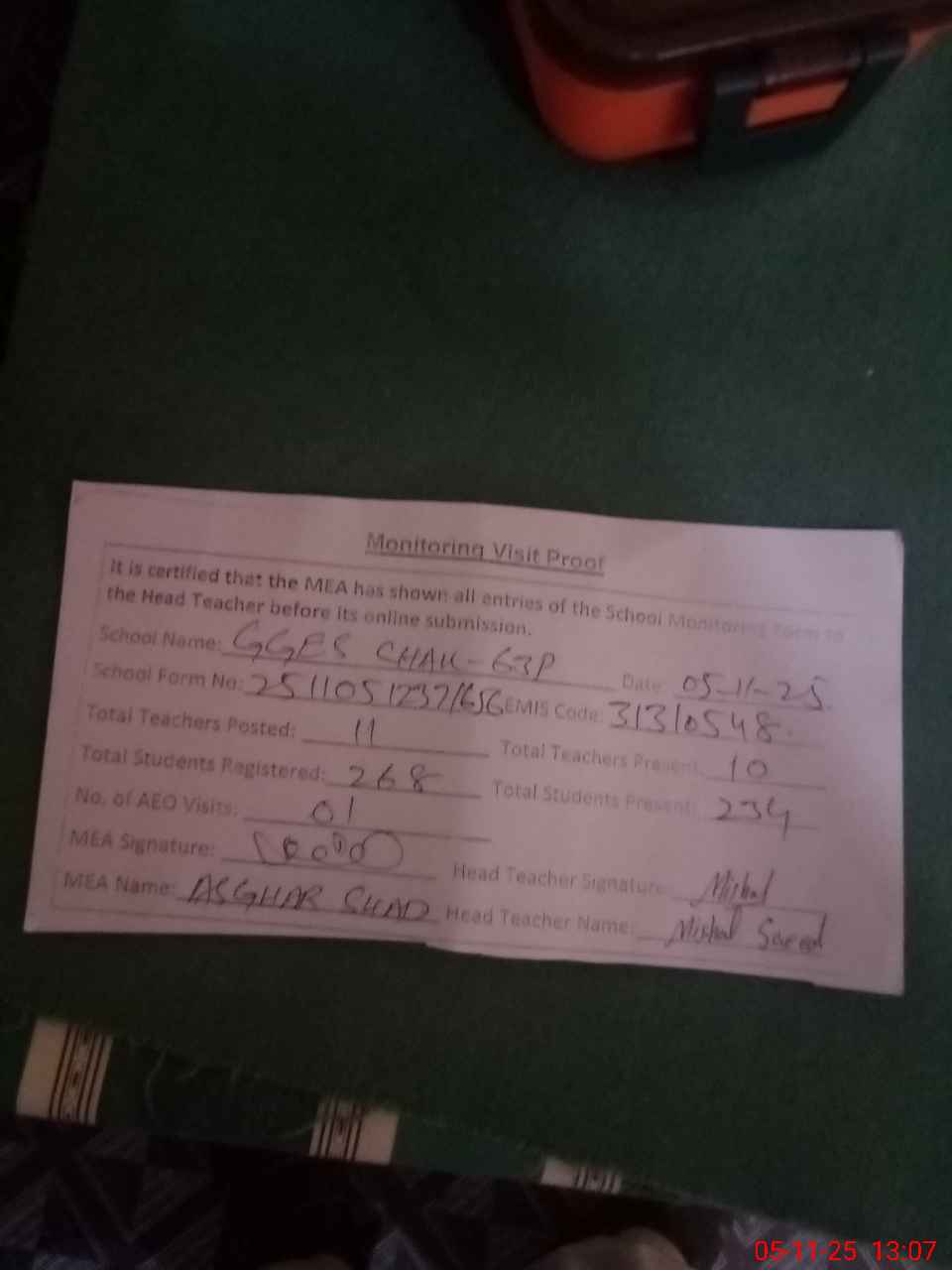 | EMIS Code: 31310548 | Name of School: GGES CHAK NO. 63/P | |||