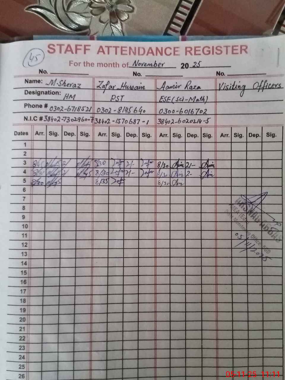 | Name: MU**** SH**** Designation: (School Headmaster's/Headmistress's) PST Phone/Cell Number: 03**** |
