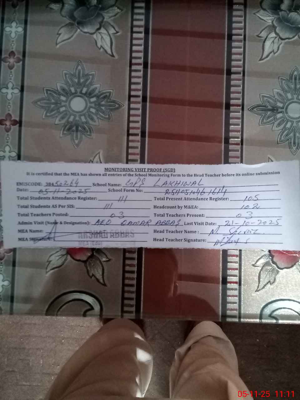 | EMIS Code: 38450264 | Name of School: GPS LAKHI WAL | |||