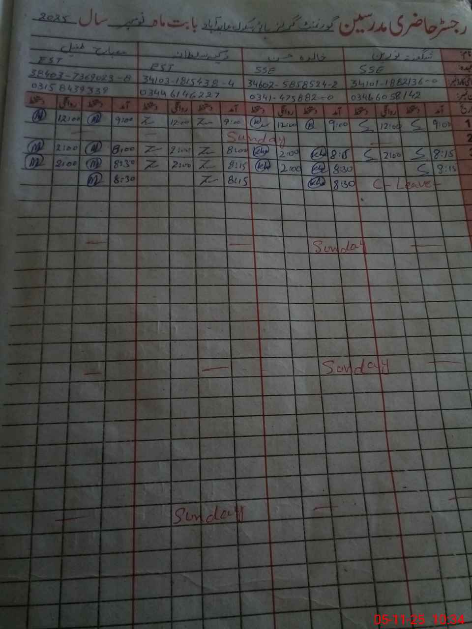 | CNIC | Full Name | Designation | R/C | Absence During Last Calender Month |