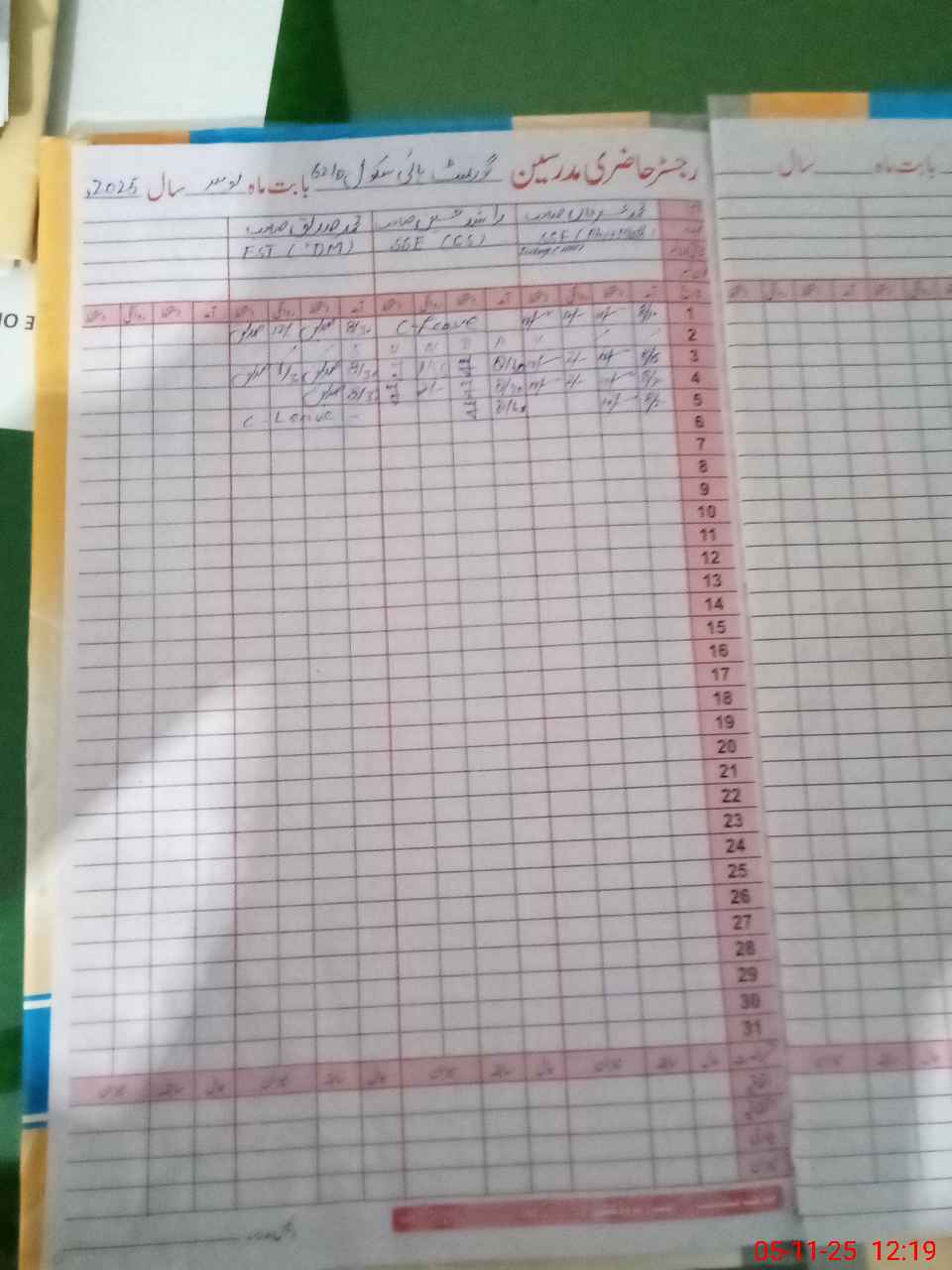 | CNIC | Full Name | Designation | R/C | Absence During Last Calender Month |