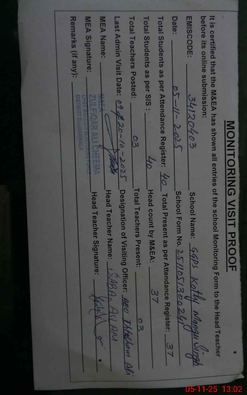 | EMIS Code: 34120403 | Name of School: GGPS KOTLI MANGO SINGH | |||