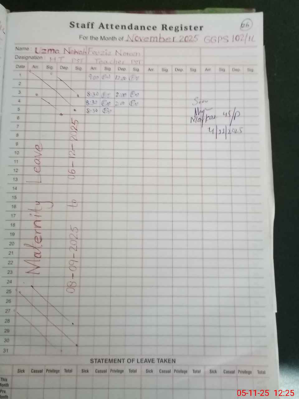 | 31**** | Uz**** Na**** | Regular | 0 | 0 | 0 | 0 | 0 | 0 | 0 | 0 | 0 | Maternity | |
