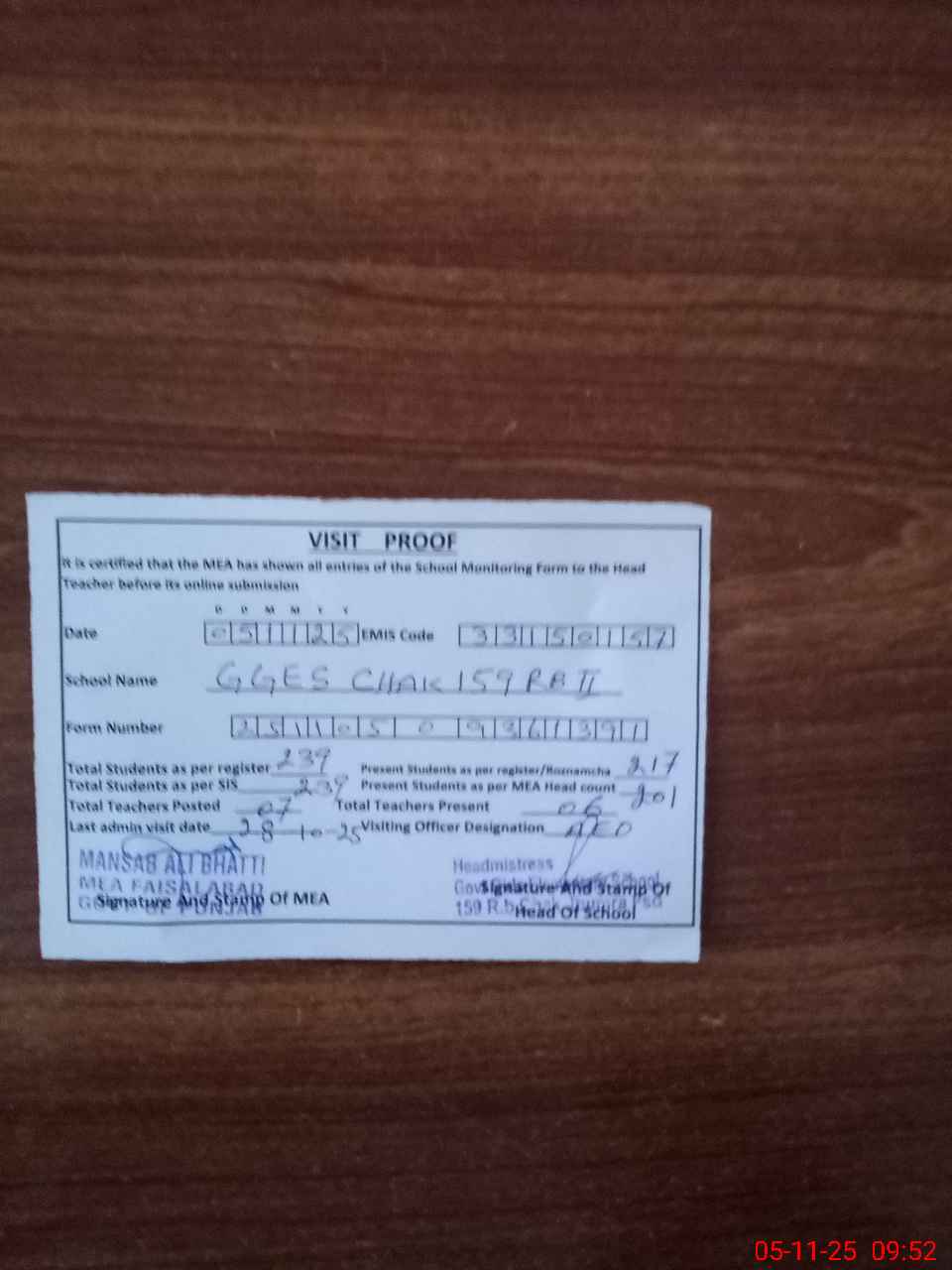 | EMIS Code: 33150157 | Name of School: GGES CHAK 159 RB II | |||