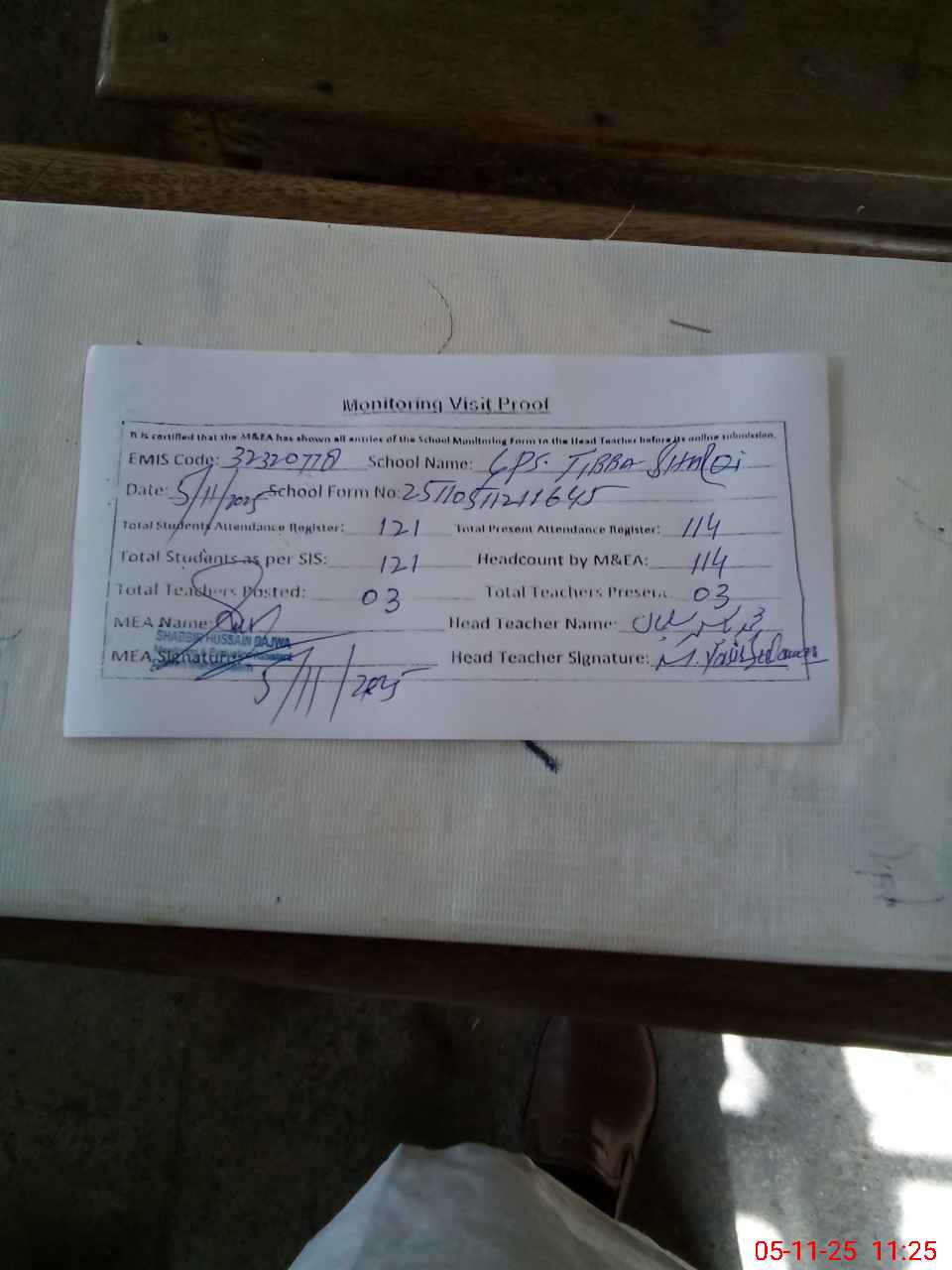 | EMIS Code: 32320778 | Name of School: GPS TIBBA SHARQI | |||