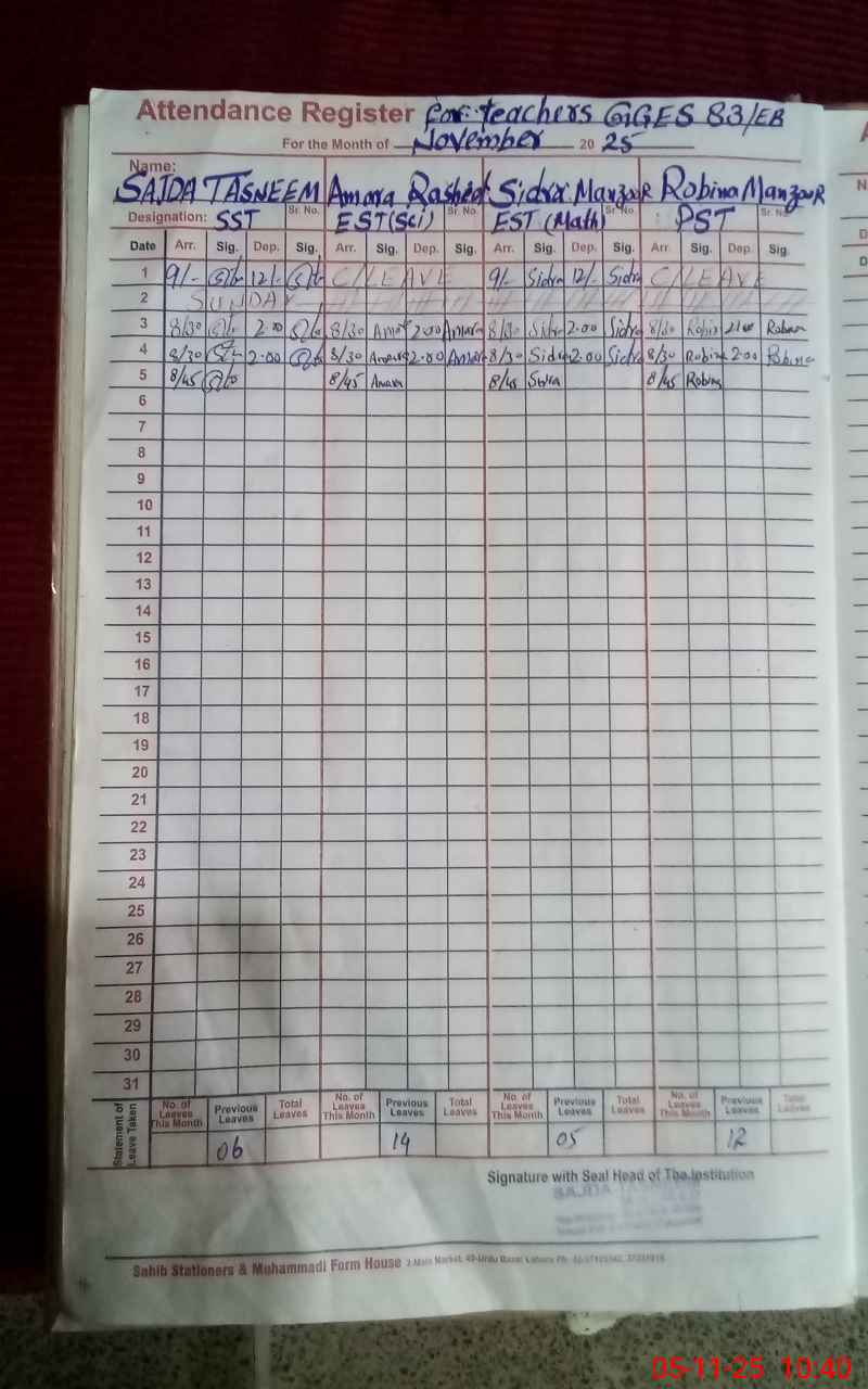 | Name: SA**** TA**** Designation: (School Headmaster's/Headmistress's) SST (GENERAL) Phone/Cell Number: 03**** |