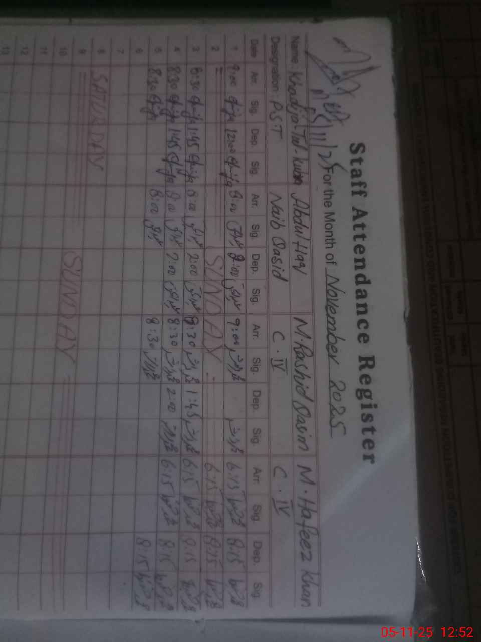 | CNIC | Full Name | Designation | R/C | Absence During Last Calender Month |