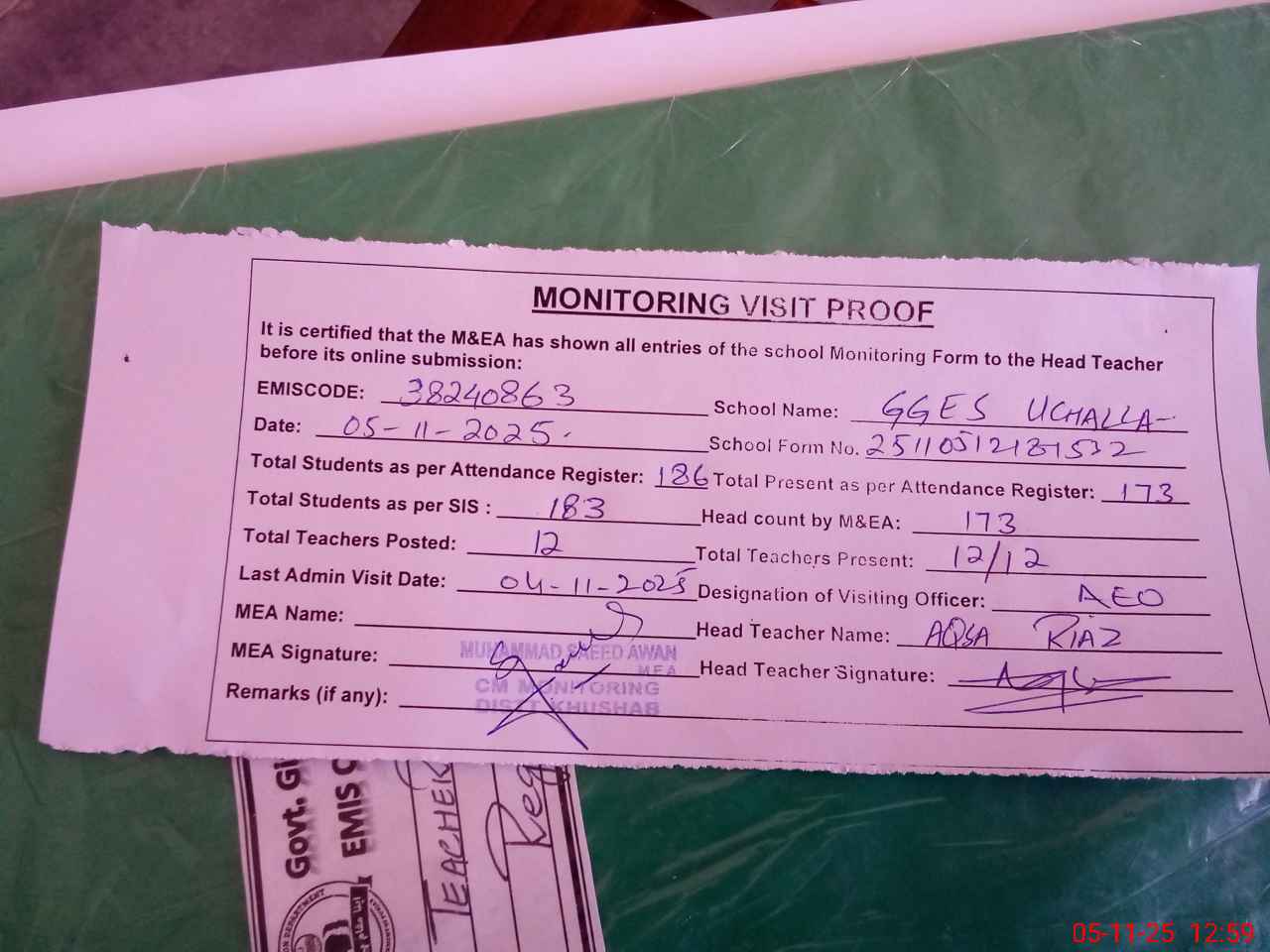 | EMIS Code: 38240863 | Name of School: GGES UCHHALA | |||