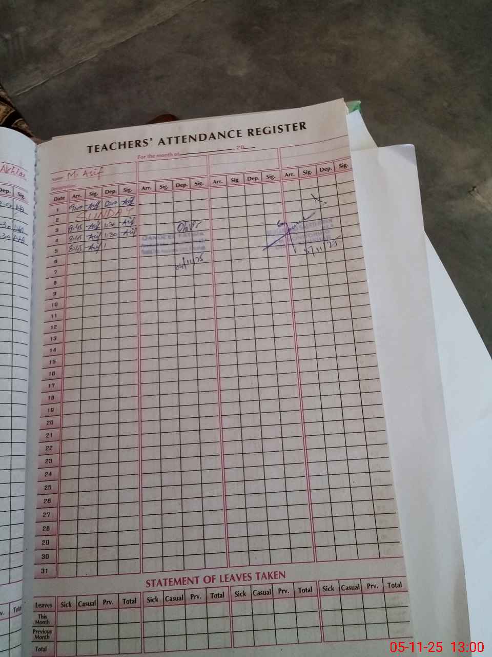 | Remarks (Use Separate Page if Required): Students on SIS Qty 183 Last admin visit On 04 November 2025 by AEO | |||||