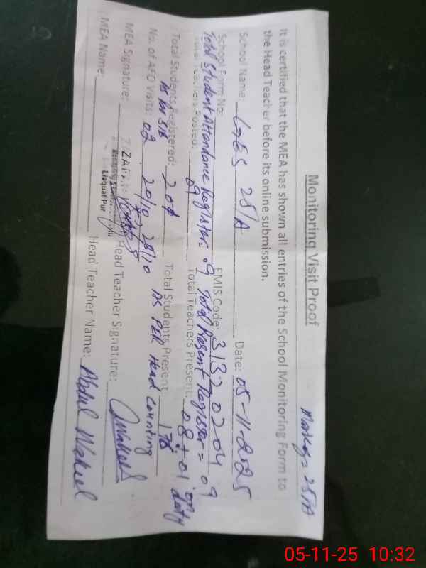 | EMIS Code: 31320204 | Name of School: GES CHAK 25/A | |||