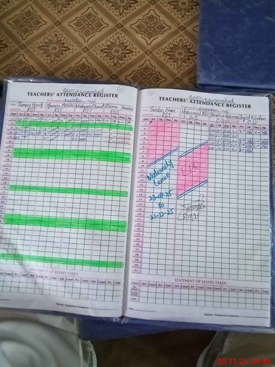 | 36**** | Su**** Na**** | ESE | Regular | 0 | 0 | 0 | 0 | 0 | 0 | 0 | 0 | 0 | Maternity |