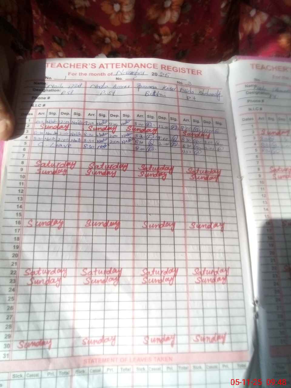 | Leave | Duty | Absent | Maternity | Medical | Ex- Pak |