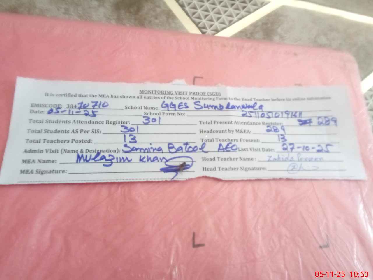 | EMIS Code: 38470710 | Name of School: GGES SUMBLAN WALA | |||