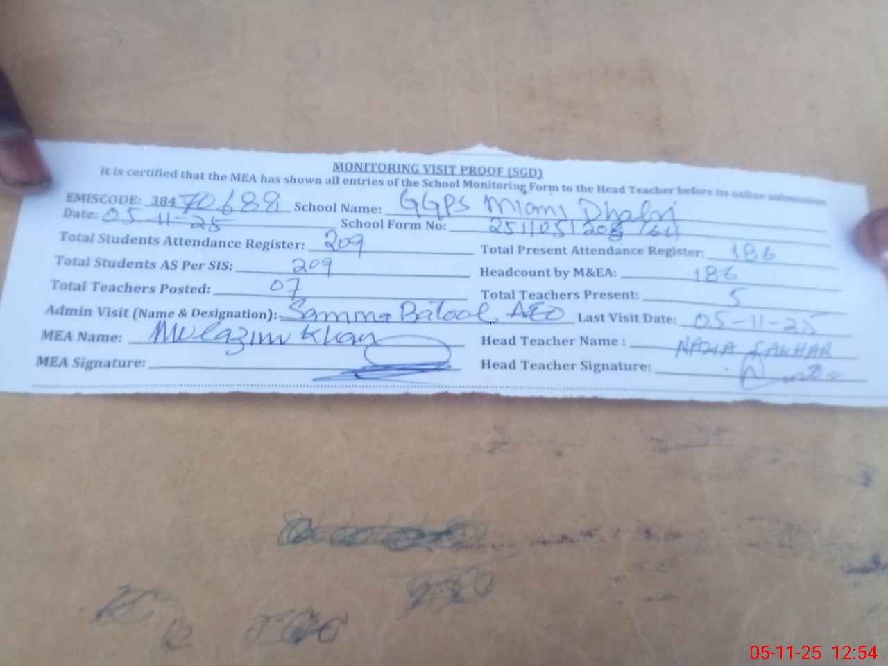 | EMIS Code: 38470688 | Name of School: GGPS MIANI DHALRI | |||