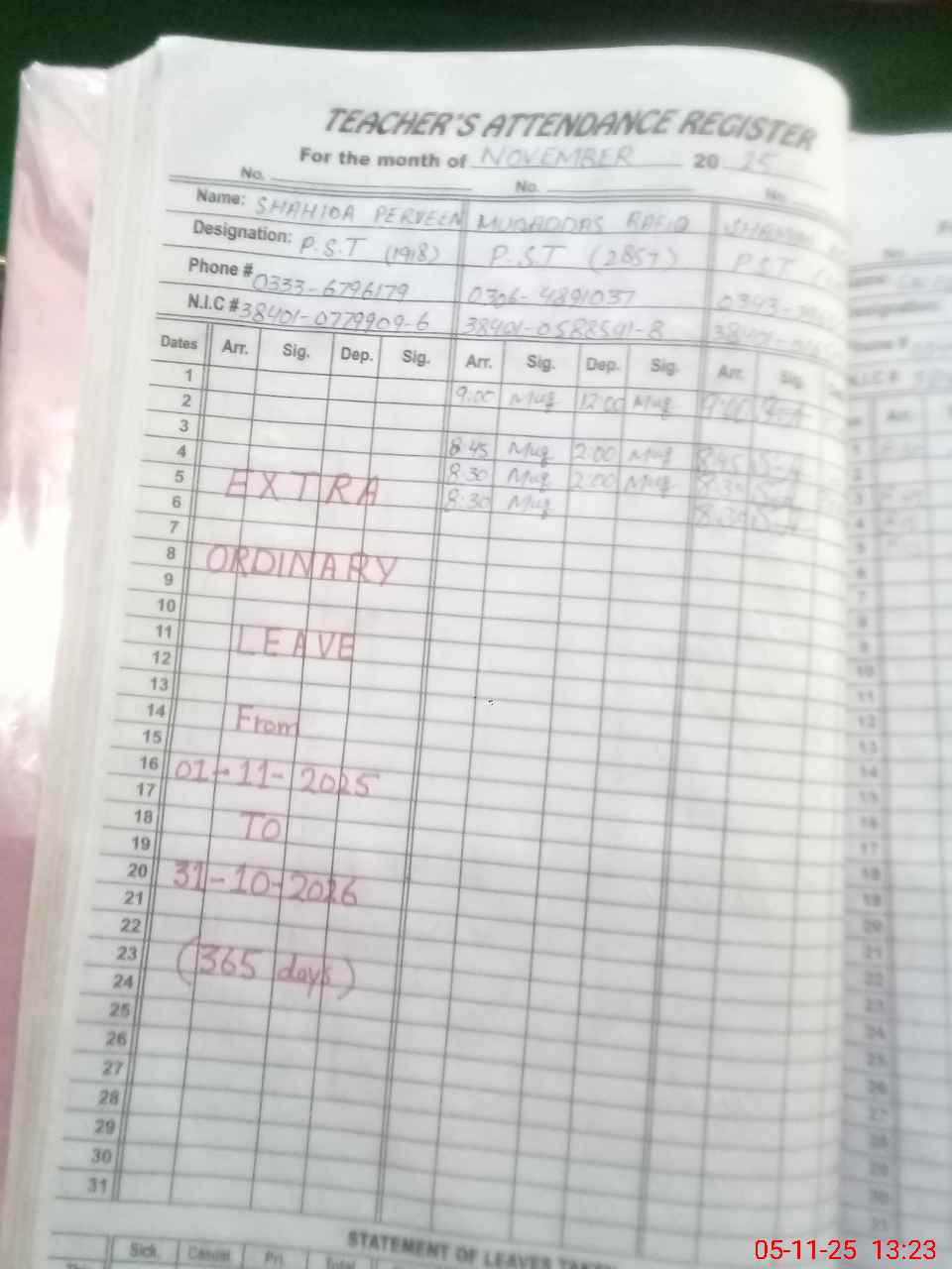 | Name: Mu**** Ra**** Designation: (School Headmaster's/Headmistress's) PST Phone/Cell Number: 03**** |