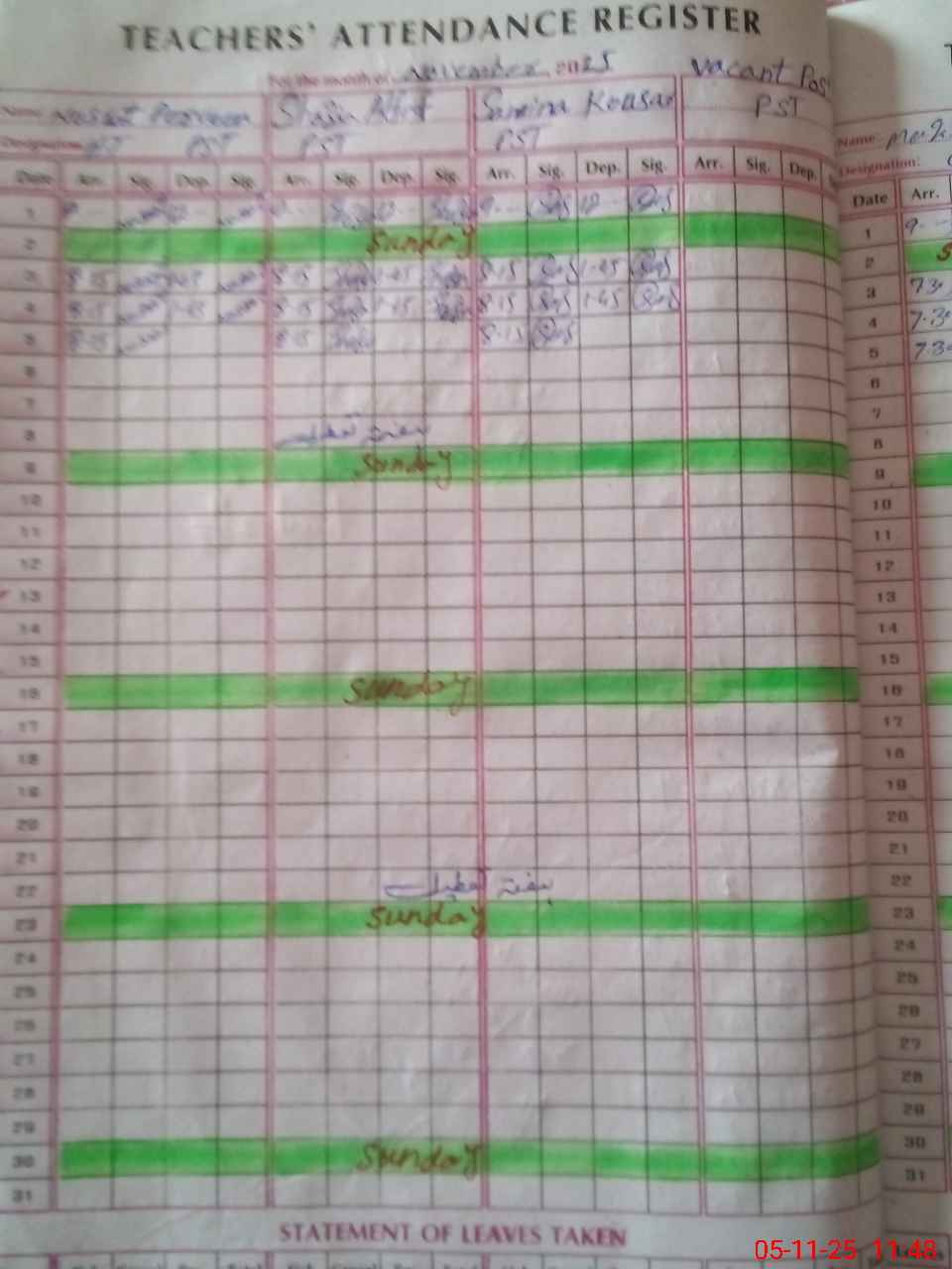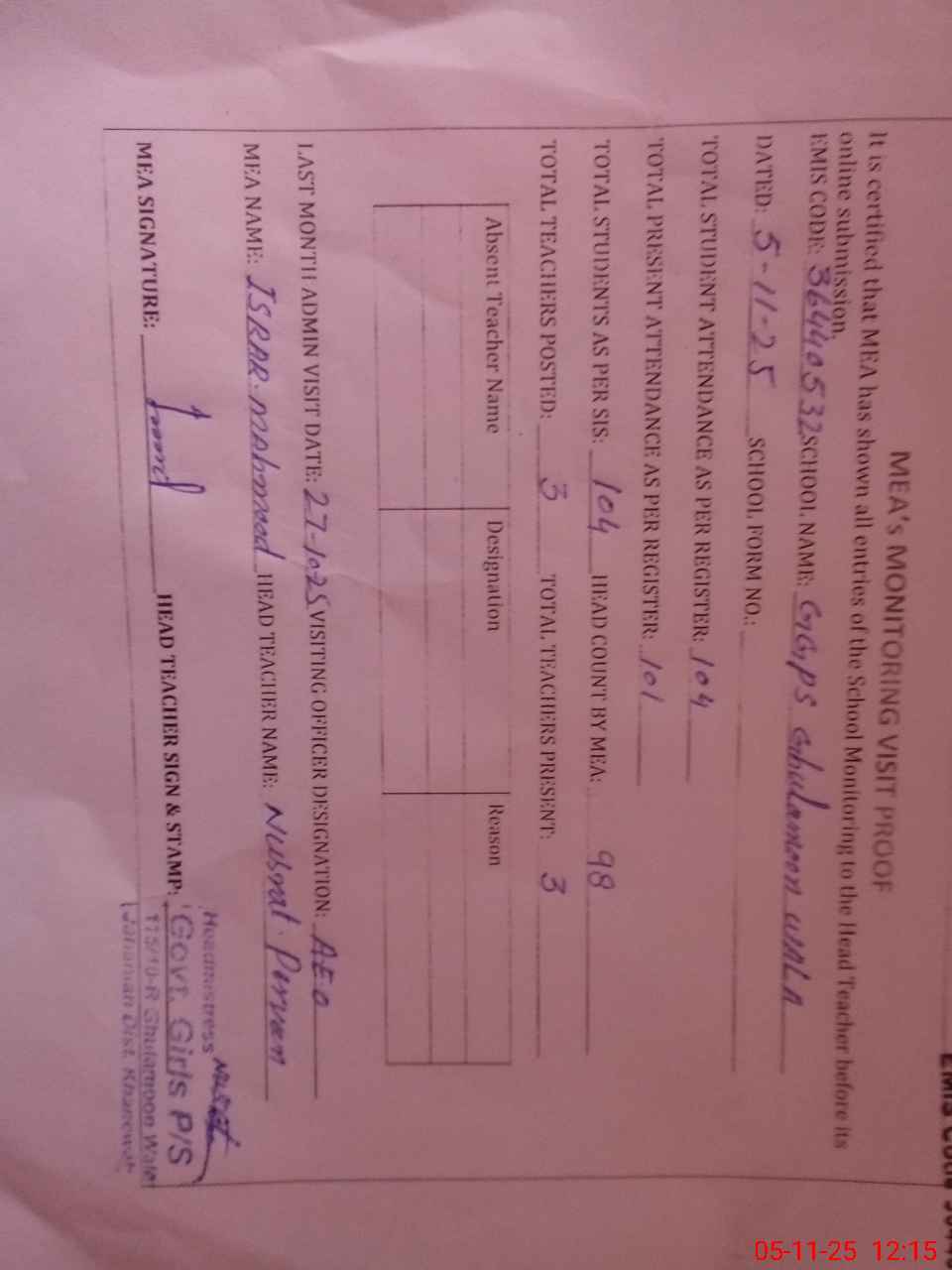 | Name: Nu**** Pe**** Designation: (School Headmaster's/Headmistress's) PST Phone/Cell Number: 03**** |