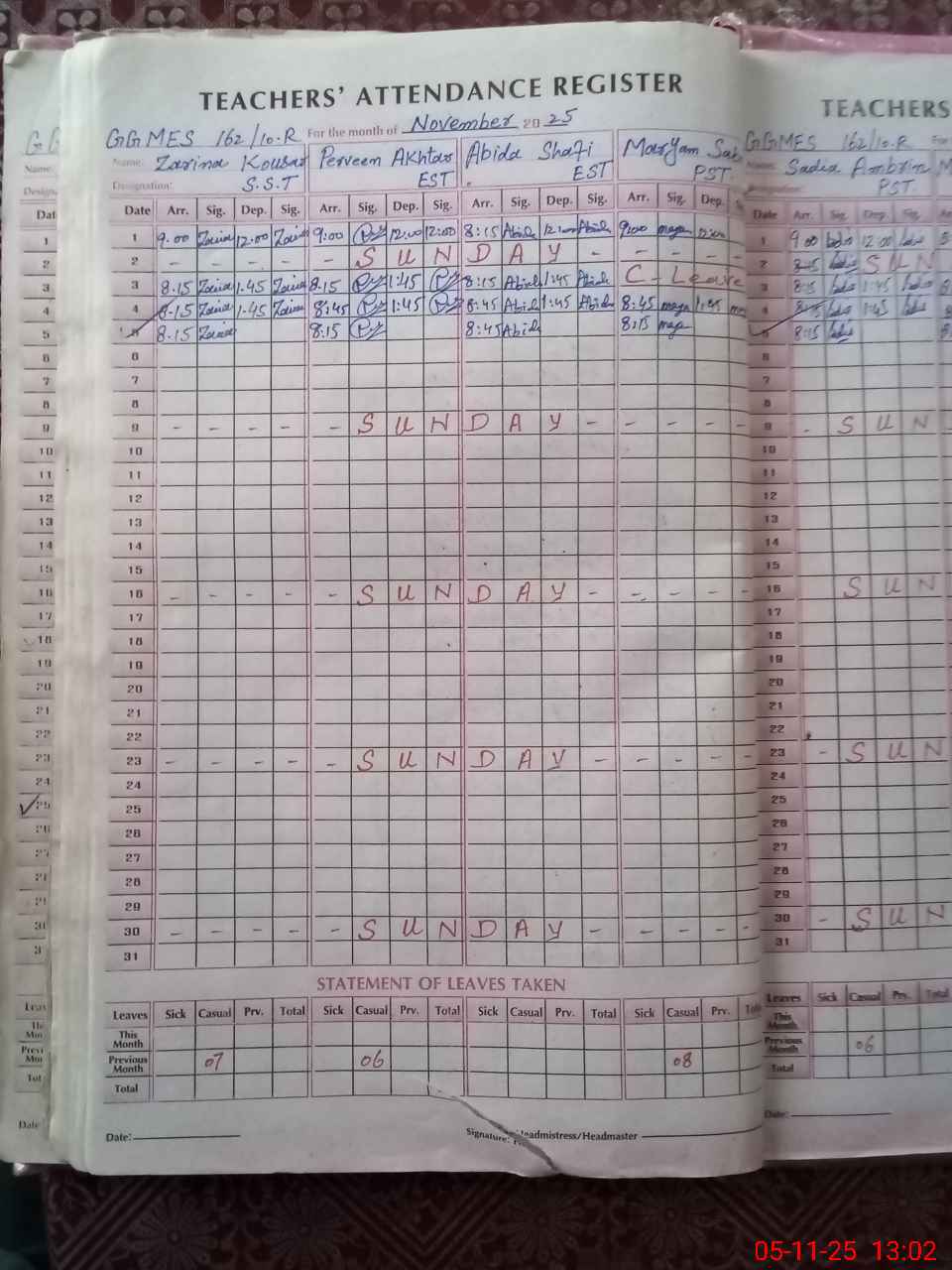 | Leave | Duty | Absent | Maternity | Medical | Ex- Pak |
