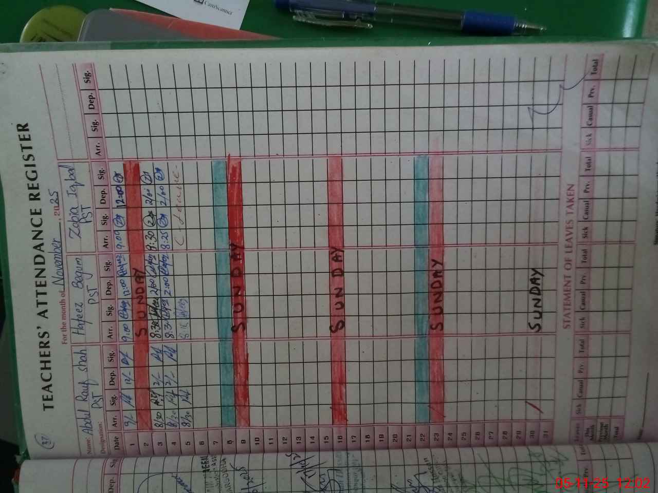 | CNIC | Full Name | Designation | R/C | Absence During Last Calender Month |
