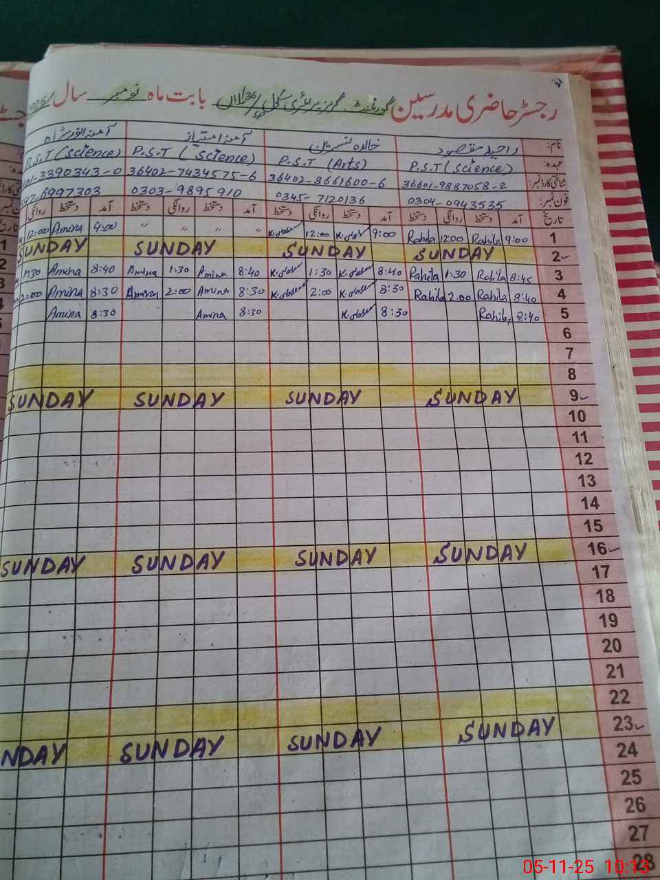 | Name: RA**** MA**** Designation: (School Headmaster's/Headmistress's) PST Phone/Cell Number: 03**** |