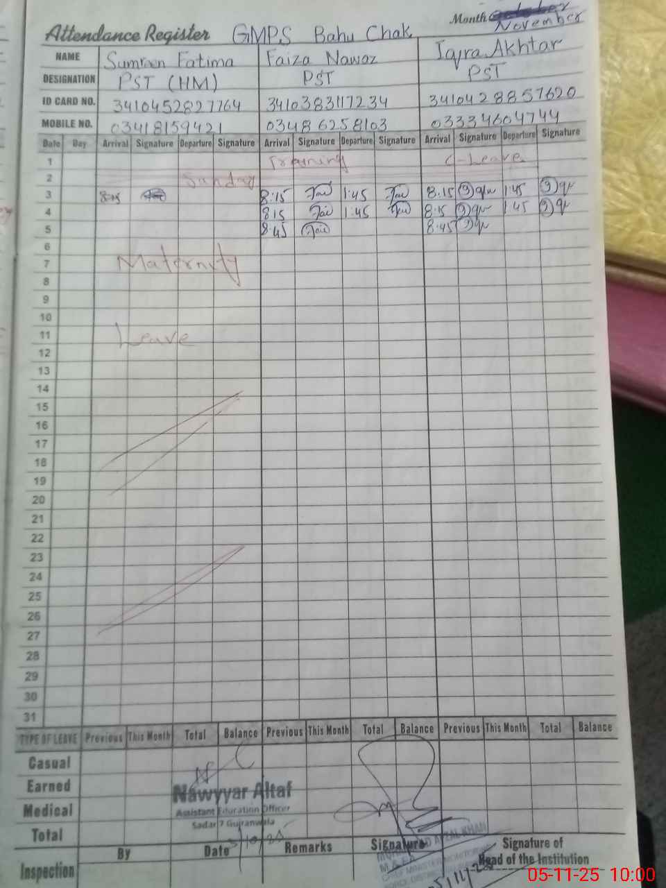 | Name: Sa**** Designation: (School Headmaster's/Headmistress's) PST/PTC/JV Phone/Cell Number: 03**** |