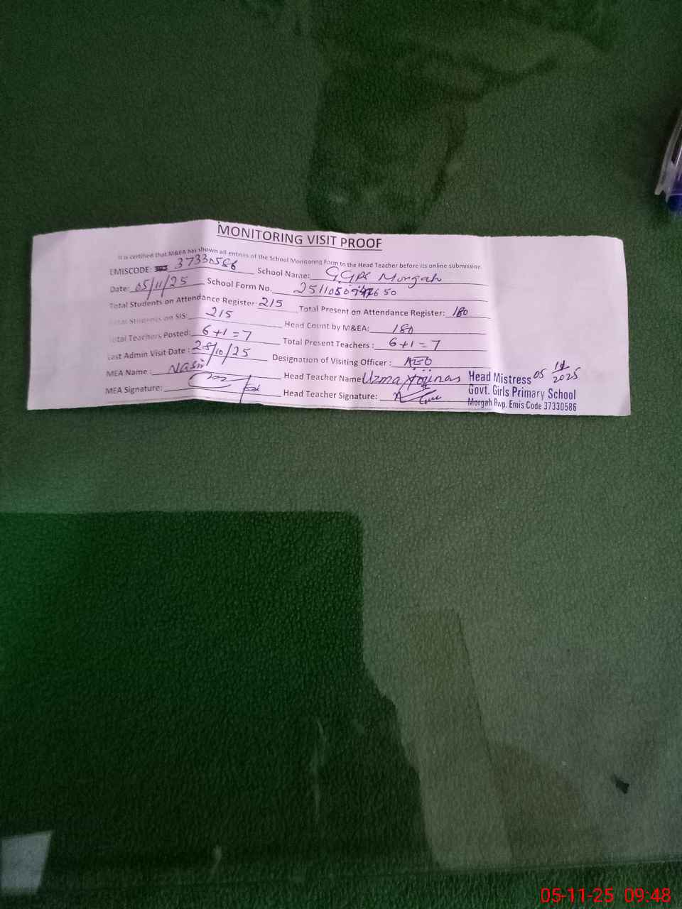 | EMIS Code: 37330586 | Name of School: GGPS MORGAH | |||
