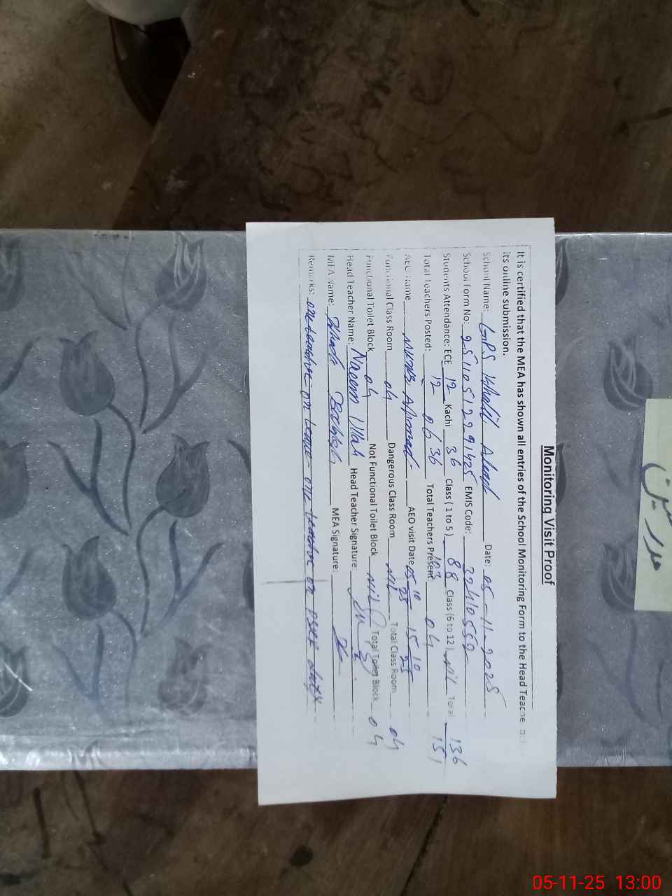 | EMIS Code: 32410552 | Name of School: GPS KHALIL ABAD | |||