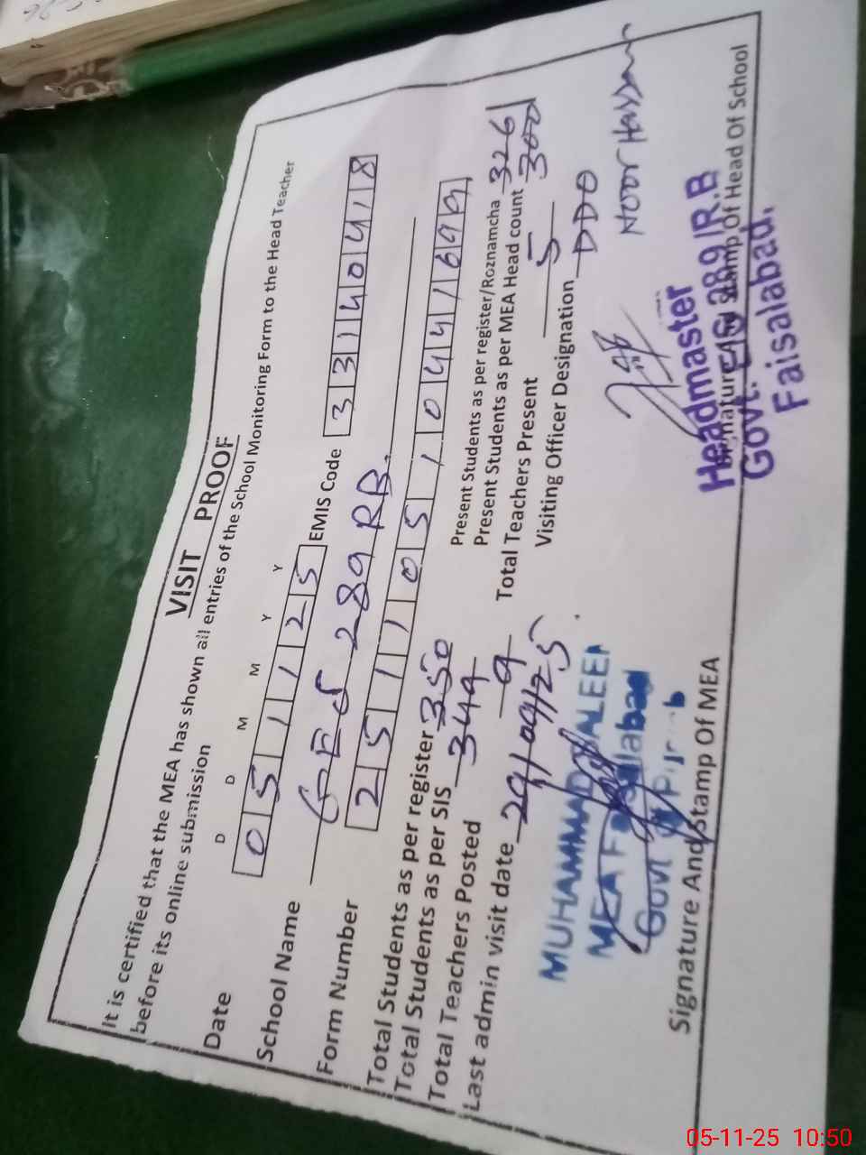 | EMIS Code: 33140418 | Name of School: GES CHAK 289 RB | |||