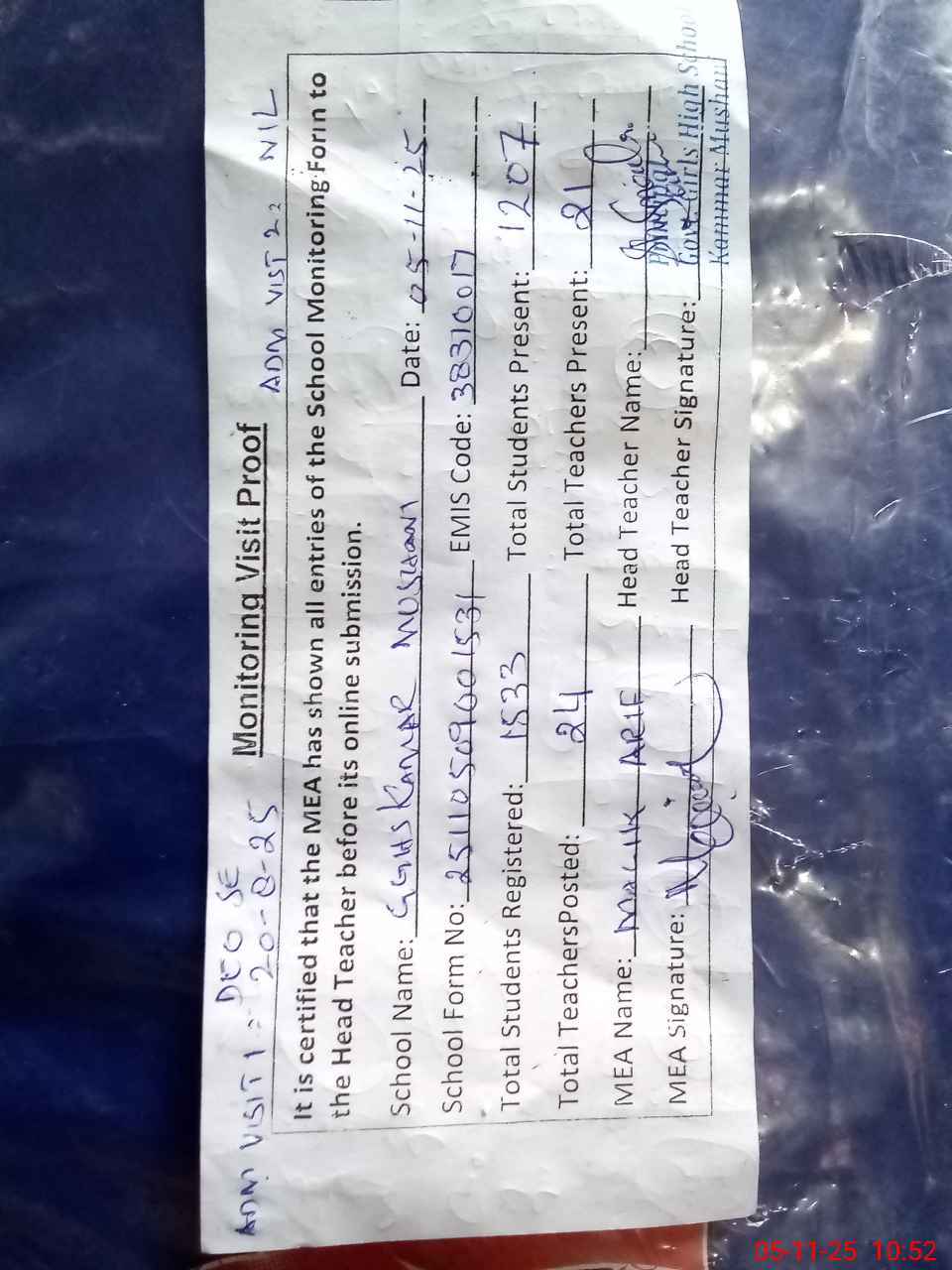 | EMIS Code: 38310017 | Name of School: GGHS KAMMAR MUSHANI | |||