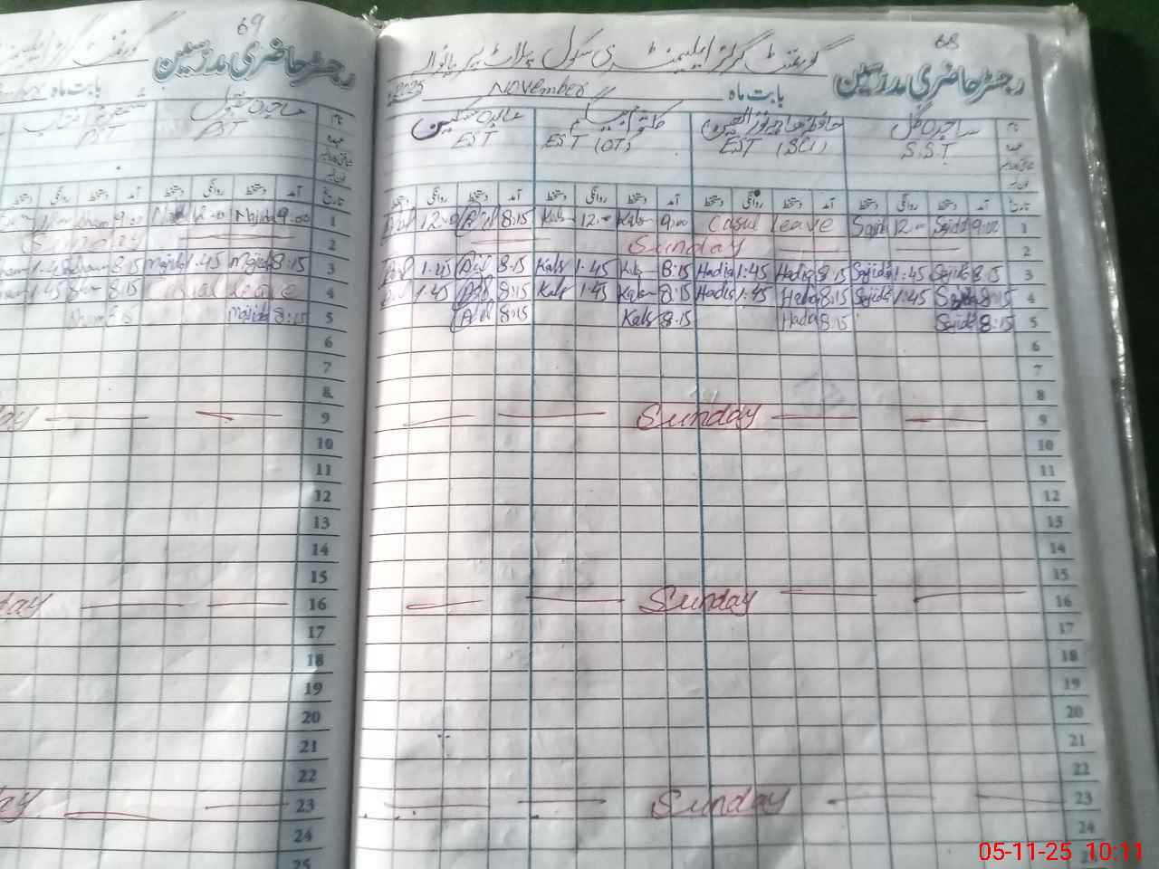| Leave | Duty | Absent | Maternity | Medical | Ex- Pak |