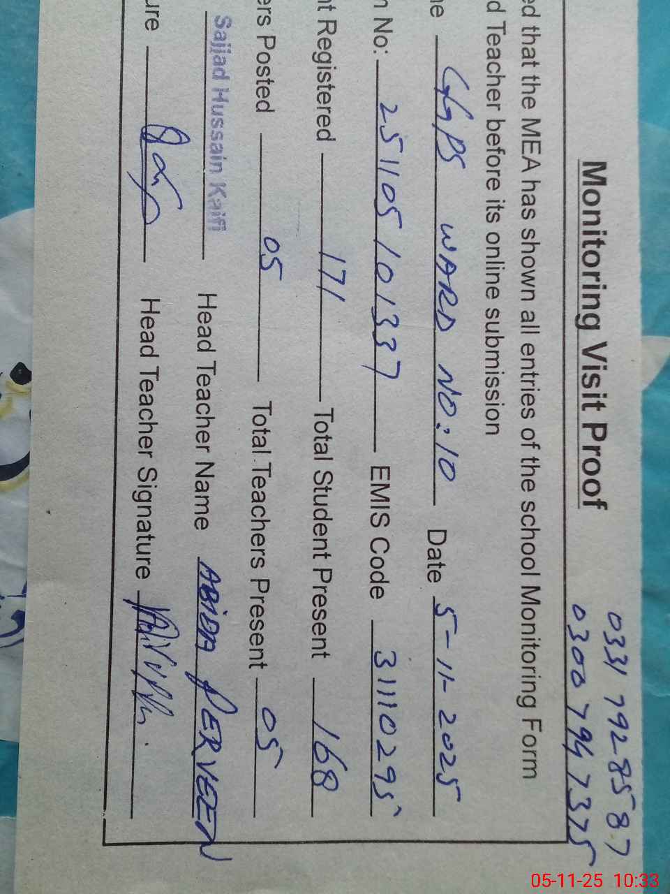 | EMIS Code: 31110295 | Name of School: GGPS WARD NO. 10 | |||