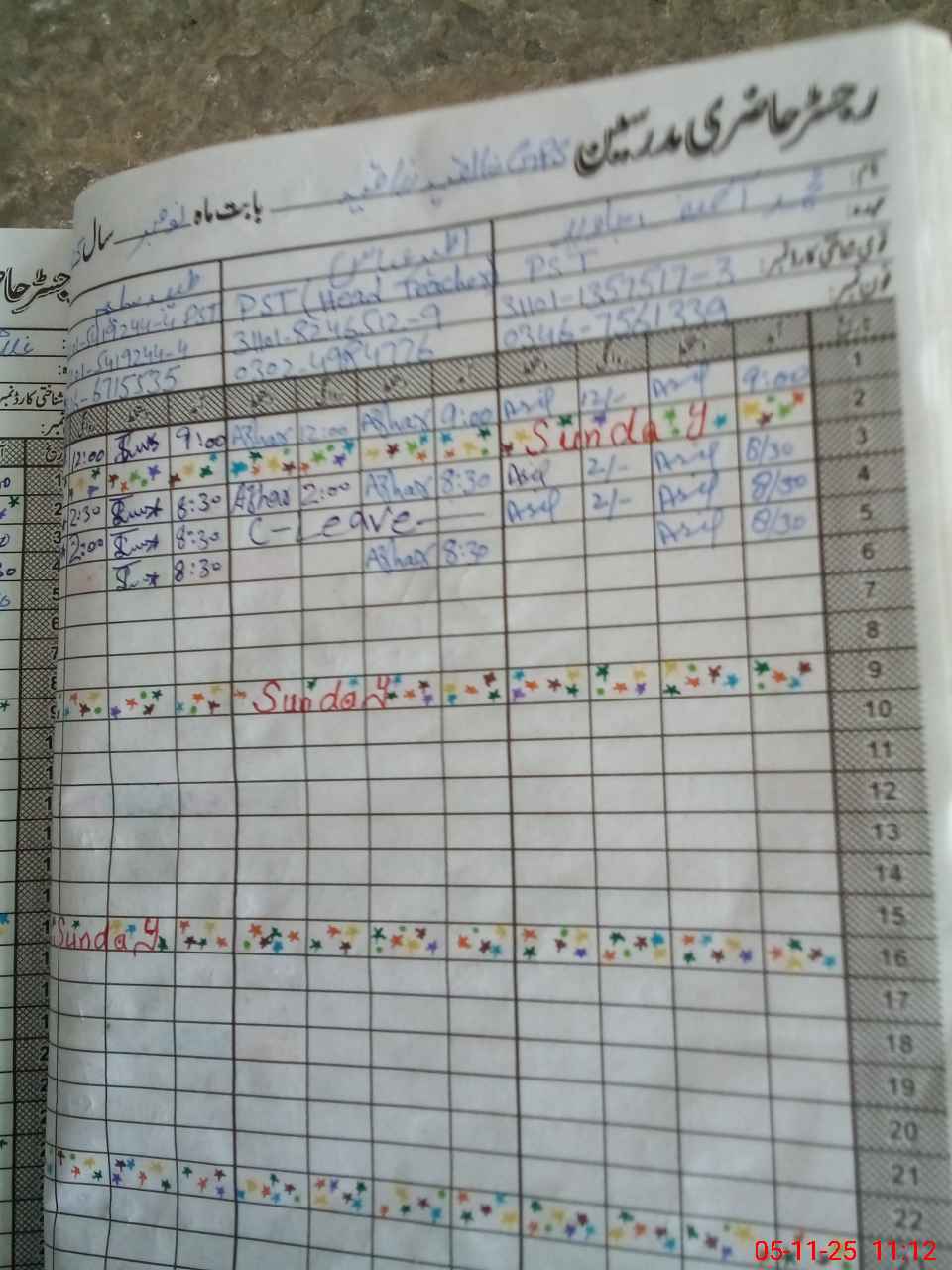 | Name: Az**** Ab**** Designation: (School Headmaster's/Headmistress's) PST Phone/Cell Number: 03**** |