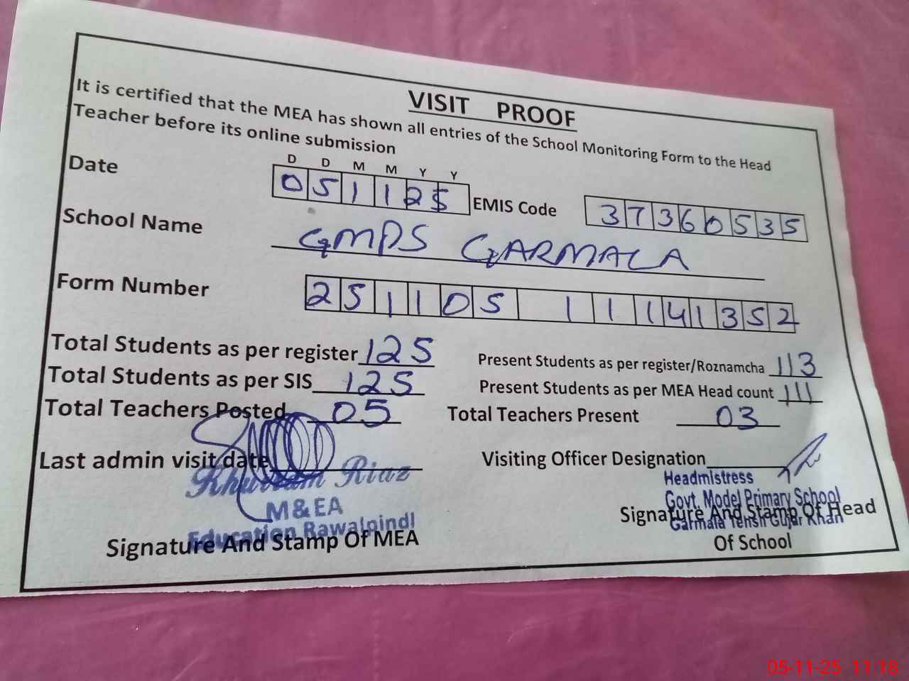 | EMIS Code: 37360535 | Name of School: GPS MODEL GARMALA | |||