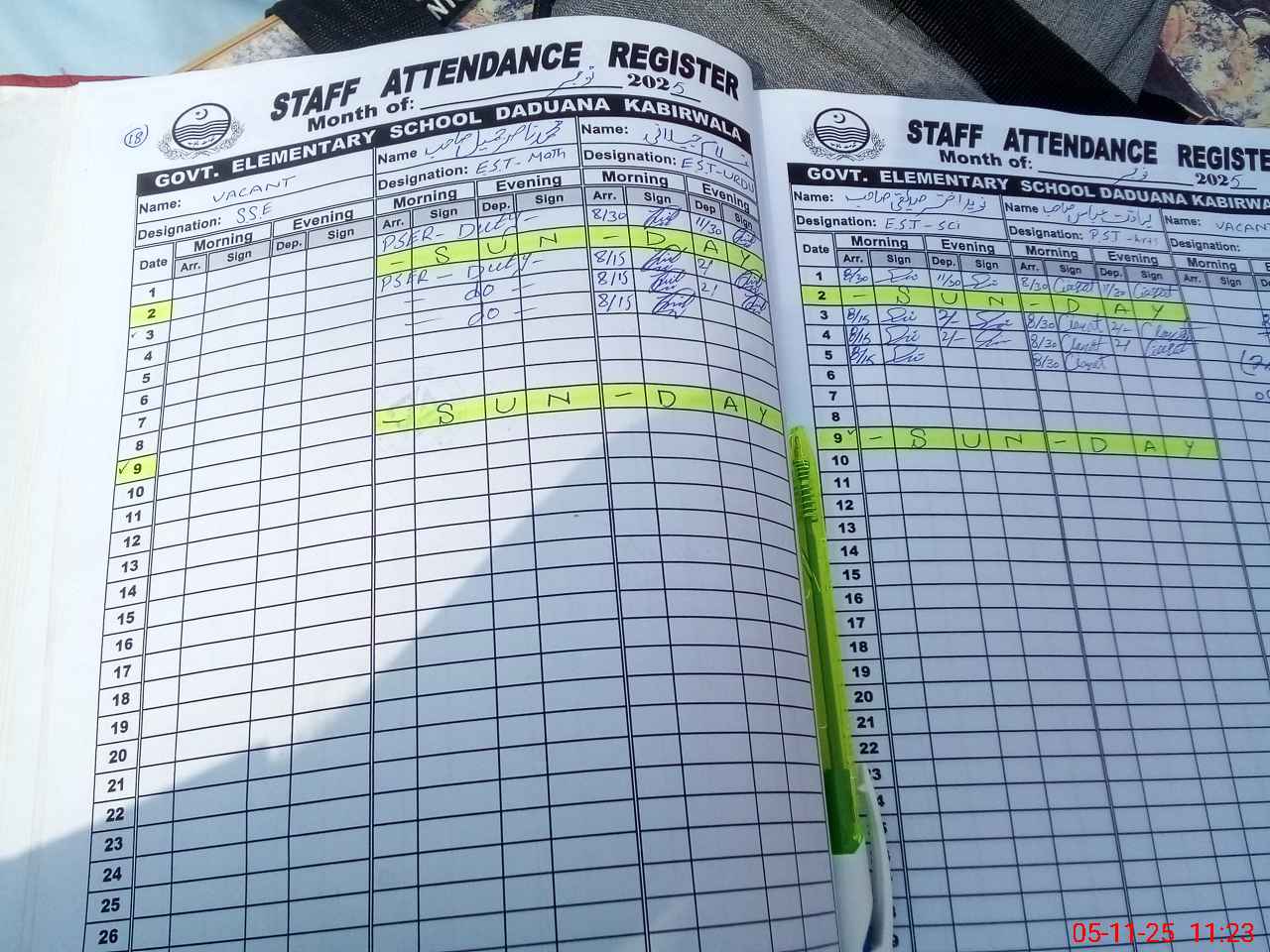 | CNIC | Full Name | Designation | R/C | Absence During Last Calender Month |