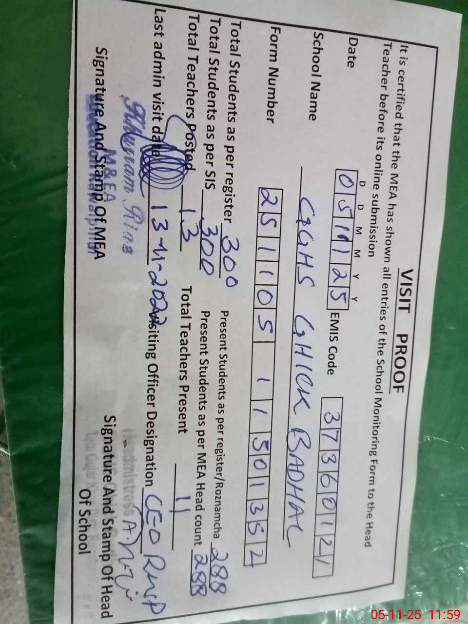 | EMIS Code: 37360121 | Name of School: GGHS GHIK BUDHAL | |||