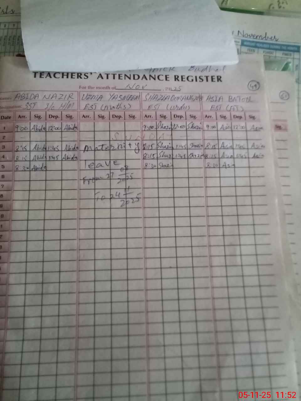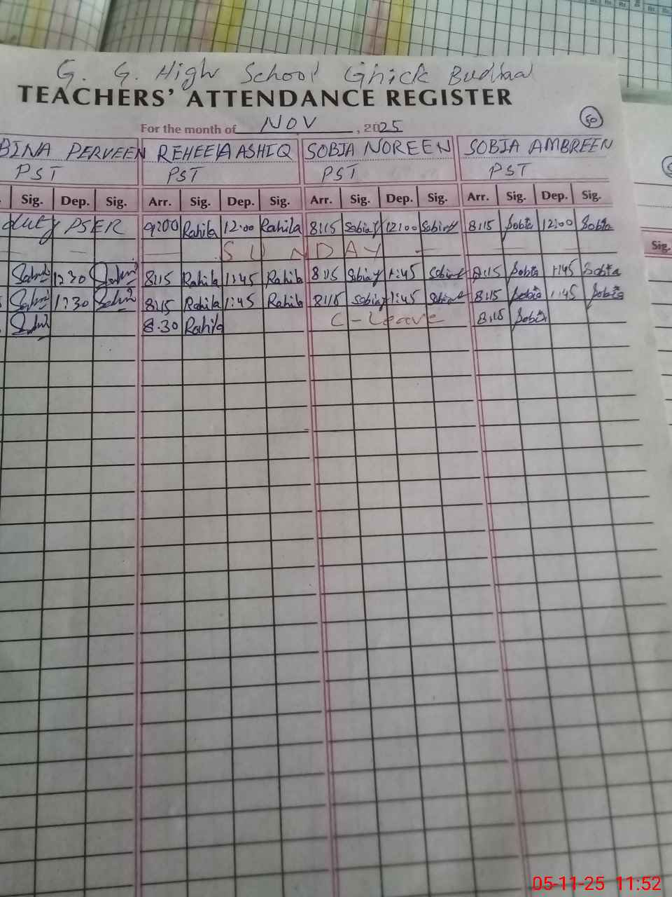 | Remarks (Use Separate Page if Required): Teacher Sobia Noreen shown on c leave on attendence register but there is no any online proof of approved leave | |||||