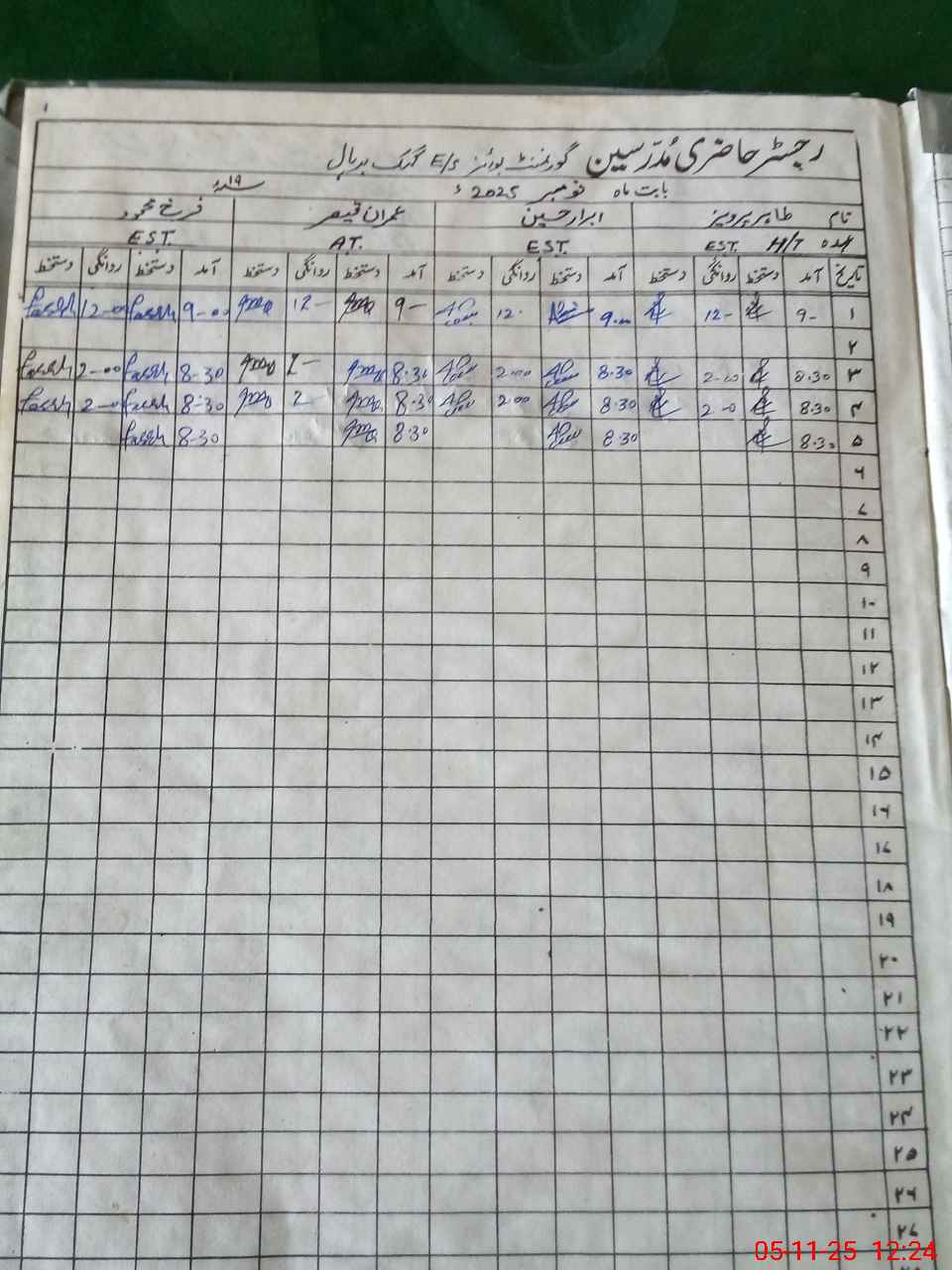 | Monitoring Date: 05-11-2025 | Start Time: 05-11-2025 12:15 PM | End Time: 05-11-2025 12:40 PM | Name of MEA: Kh**** Ri**** | |