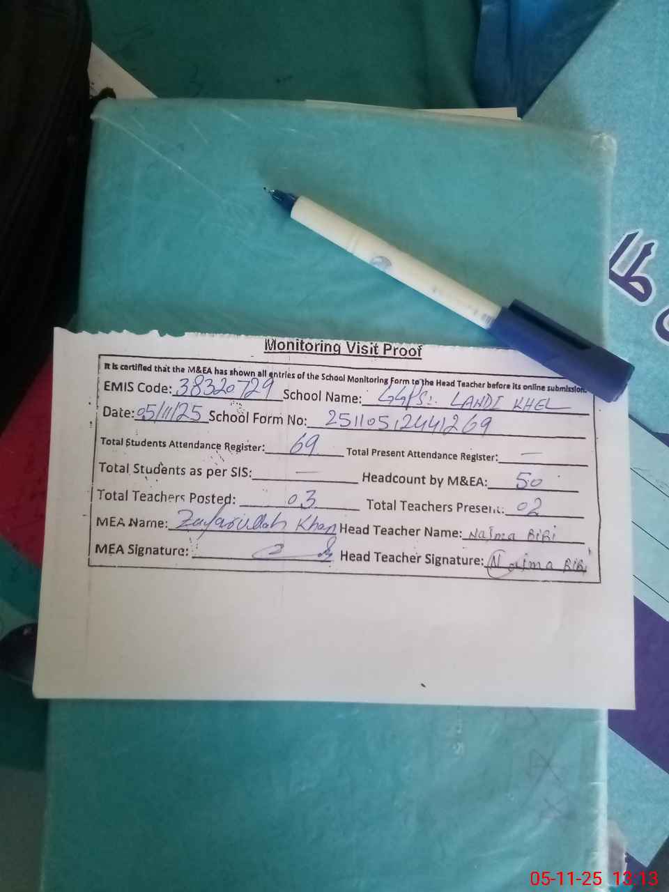 | EMIS Code: 38320729 | Name of School: GGPS LANDI KHEL | |||