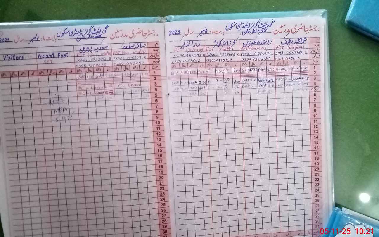 | Name: Sh**** La**** Designation: (School Headmaster's/Headmistress's) EST Phone/Cell Number: 03**** |