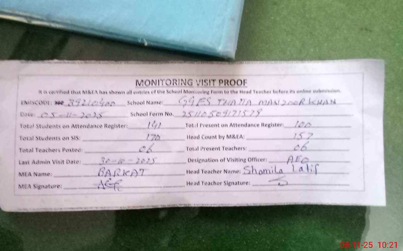 | EMIS Code: 39210400 | Name of School: GGES THATTA MANZOOR KHAN | |||
