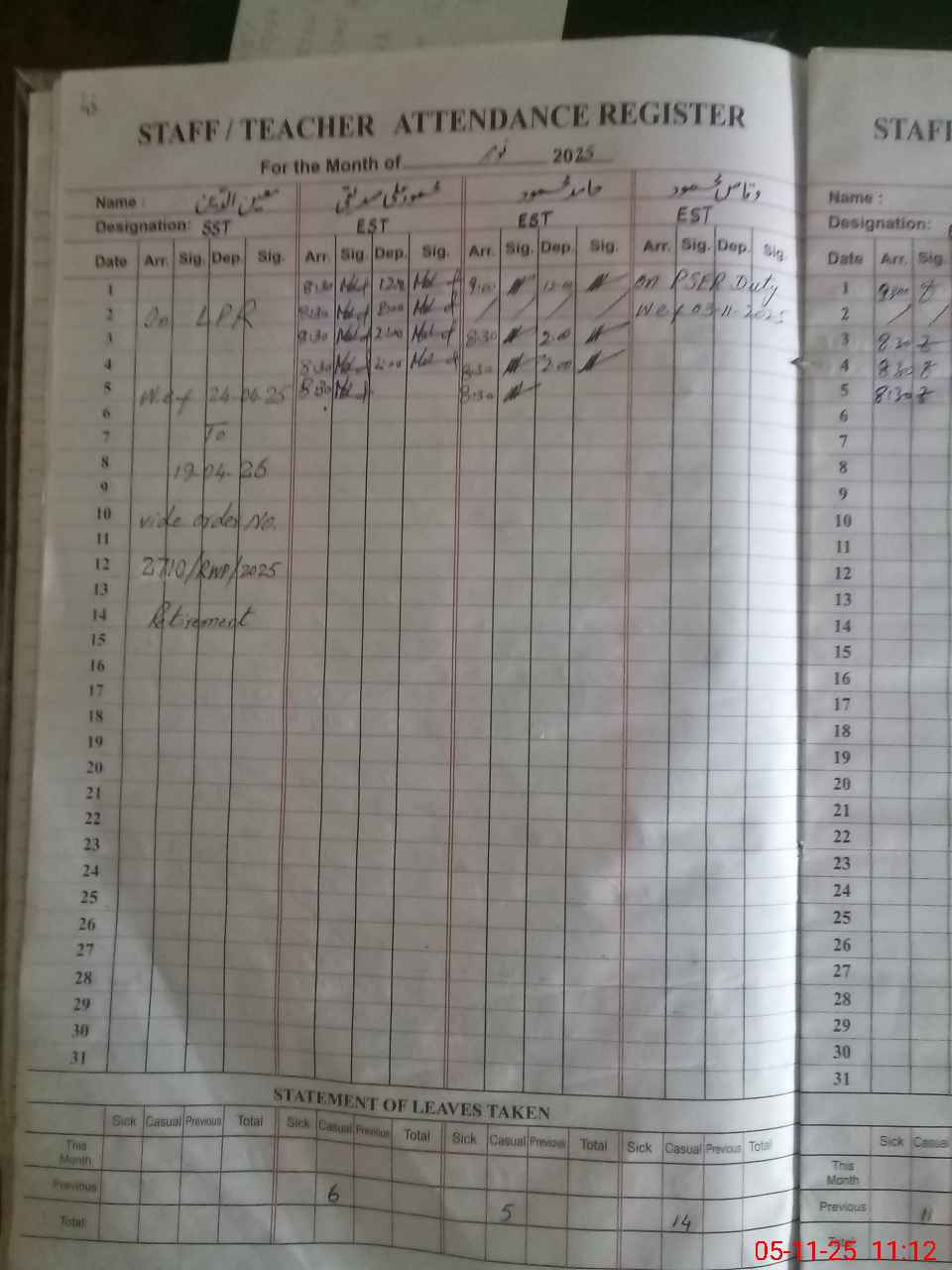 | 38**** | Ad**** Kh**** | S.S.E.(PHY-MATH) | Temporary | 0 | 0 | 0 | 0 | 0 | 0 | 0 | 0 | 0 | Casual |