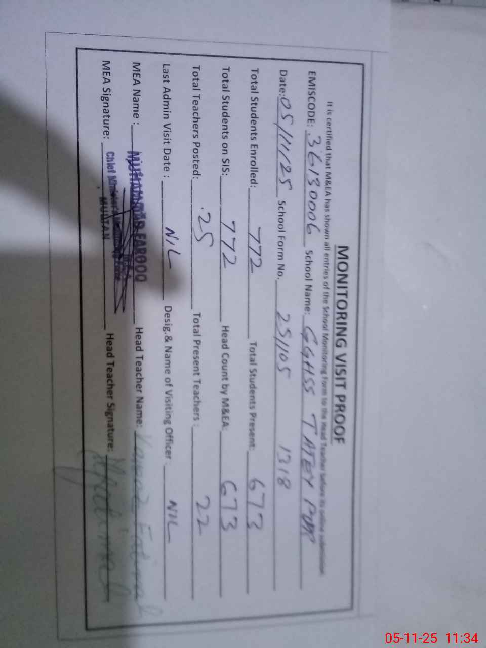 | EMIS Code: 36130006 | Name of School: GGHSS TATEY PUR | |||