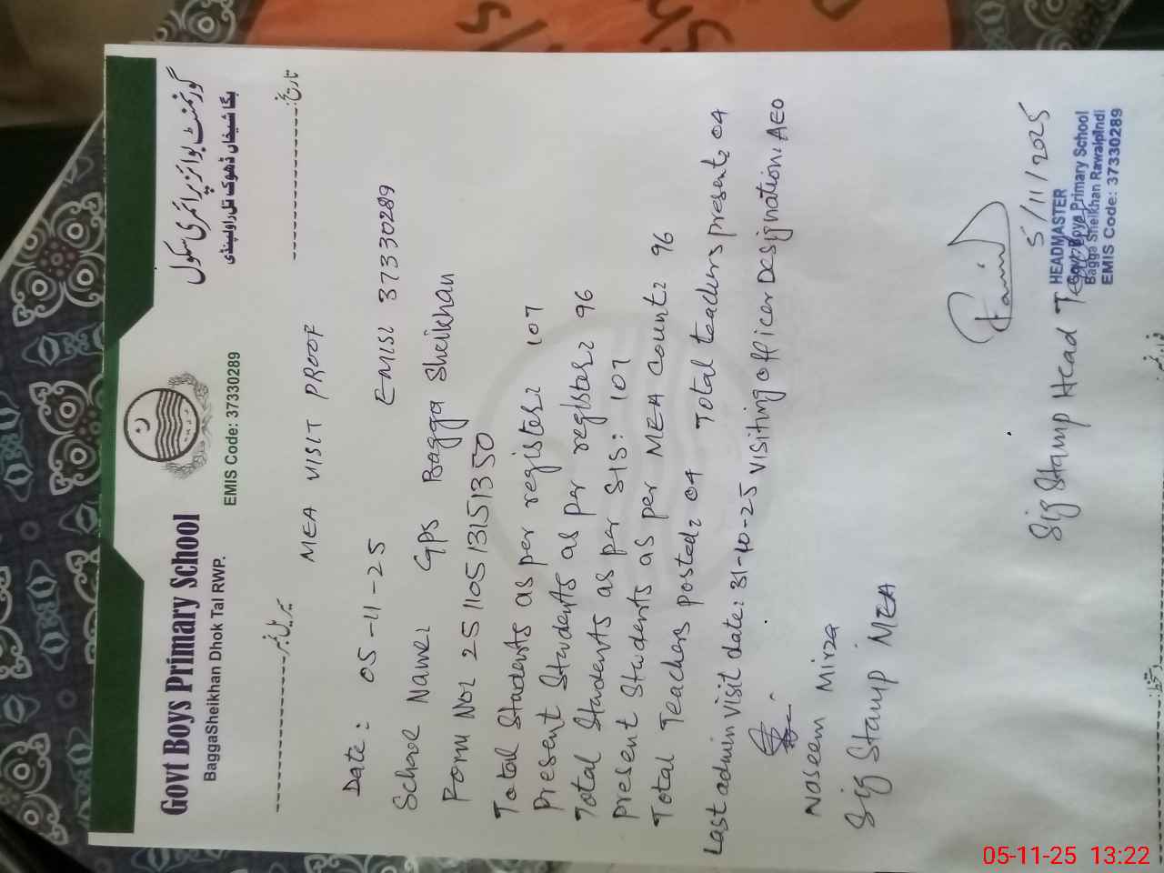 | EMIS Code: 37330289 | Name of School: GPS BAGGA SHEIKHAN | |||