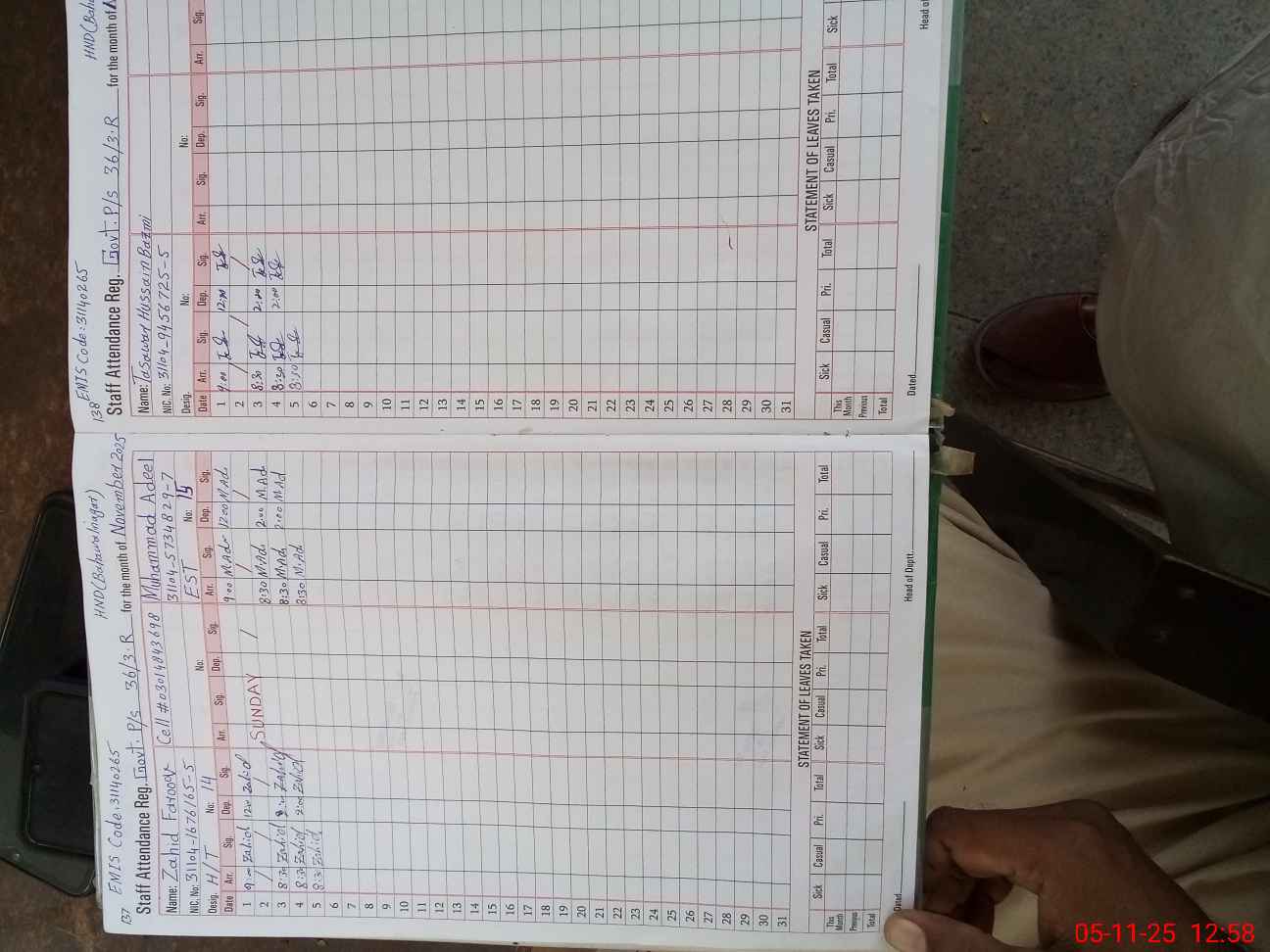 | Name: Za**** Fa**** Designation: (School Headmaster's/Headmistress's) PST Phone/Cell Number: 03**** |