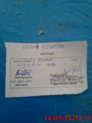 | Monitoring Date: 14-03-2015 | Start Time: 14-03-2015 11:03 AM | End Time: 14-03-2015 12:13 PM | Name of MEA: Mo**** Ar**** | |