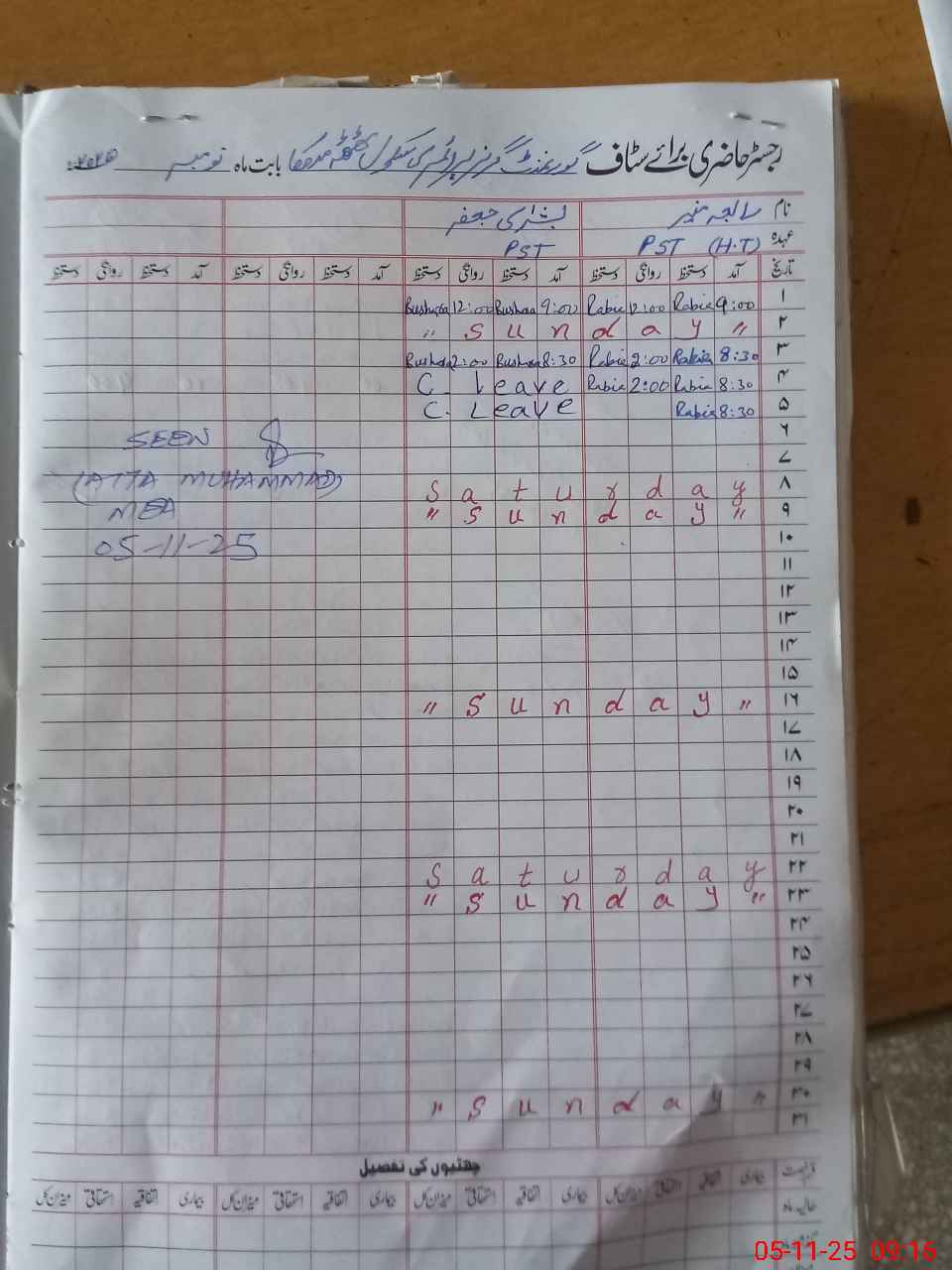 | CNIC | Full Name | Designation | R/C | Absence During Last Calender Month |