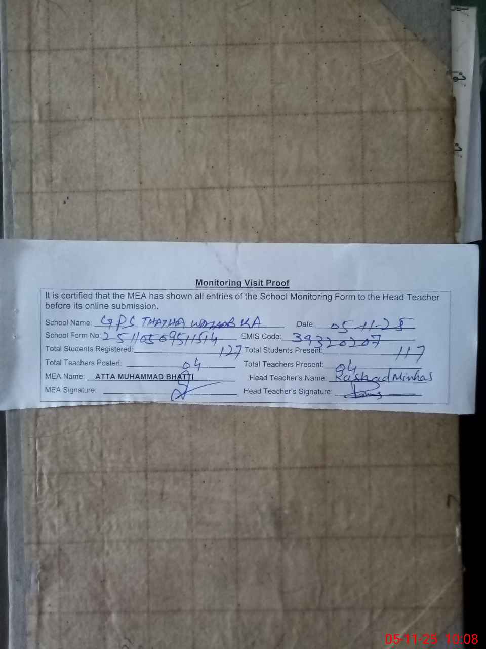 | EMIS Code: 39320207 | Name of School: GPS THATHA WAHAB KA | |||