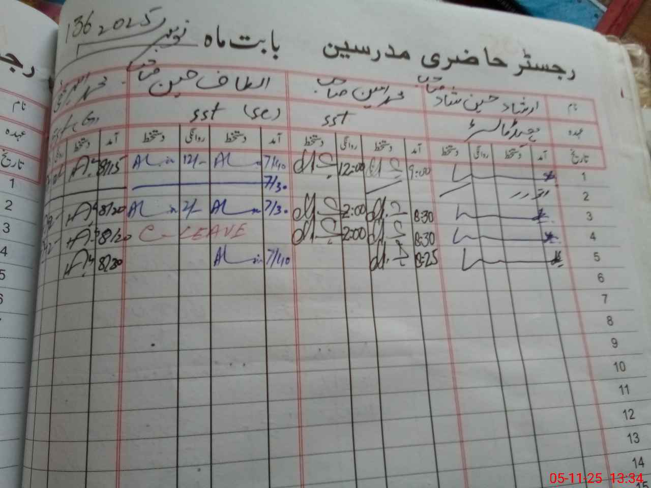 | CNIC | Full Name | Designation | R/C | Absence During Last Calender Month |