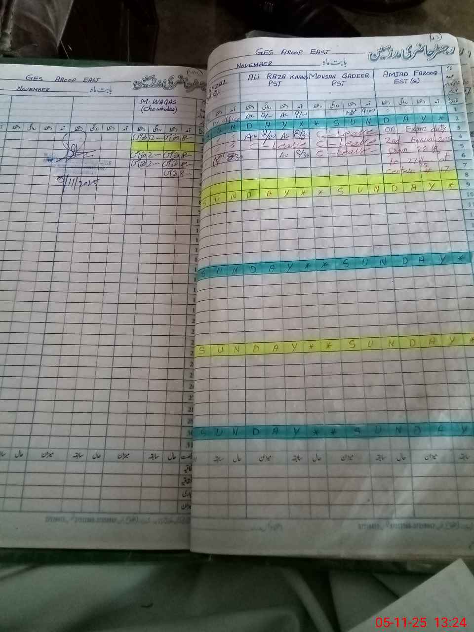 | CNIC | Full Name | Designation | R/C | Absence During Last Calender Month |