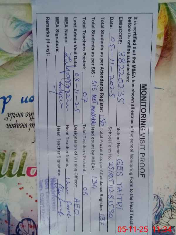 | EMIS Code: 38220235 | Name of School: GES TAITRI | |||